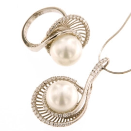 Колие от " Jacklin " в сребро с кралски седеф и цирконии