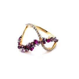 Пръстен от "Jacklin " в жълто злато с рубин, турмалин и цирконии