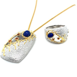 Колие от “Jacklin ” в сребро с позлата и лапис лазули