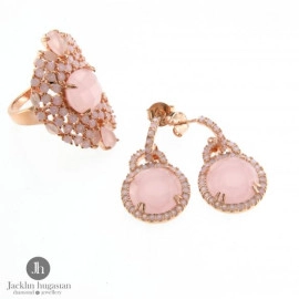 Комплект пръстен и обеци от "Jacklin " в бяло и розово сребро с цирконии