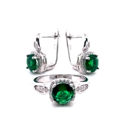 Комплект пръстен и обеци от " Jacklin " в сребро с циркони и турмалин