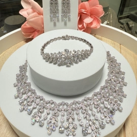 Комплект обеци и колие от "Jacklin " в сребро с циркони и седеф Проба : 925