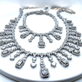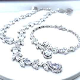 Комплект от колие и гривна от“Jacklin ” в сребро със седеф и цирконии.