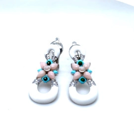 Обеци от “Jacklin ” в сребро,розош кварц,рубин,емайл и циркони.