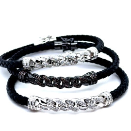 Гривна от „Jacklin “ в сребро,кожа и циркони/топаз