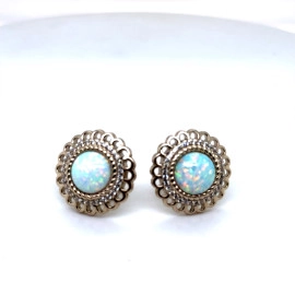 Обеци от "Jacklin " в сребро с позлата, циркони и опал.