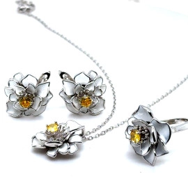 Комплект колие, обеци и пръстен от “Jacklin ” в сребро с цитрин и емайл.