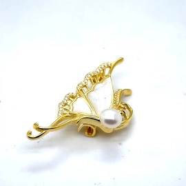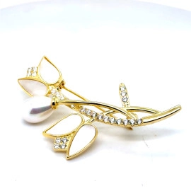 Брошка от ”Jacklin ” в сребро с позлата с естествен седеф,циркони и естествена перла.