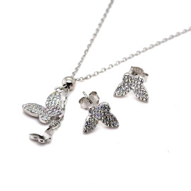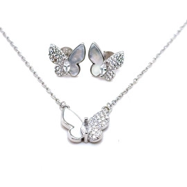 Комплект обеци и колие от "Jacklin " в сребро с циркони и седеф