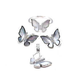 Комплект колие, обеци и пръстен от “Jacklin ” в сребро с циркони и седеф