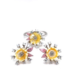 Комплект колие, обеци и пръстен от “Jacklin ” в сребро с циркони, седеф и цветен емайл.