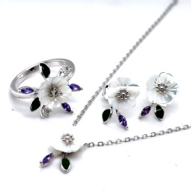 Комплект от "Jacklin " в сребро с циркони,кралски седеф и емайл.