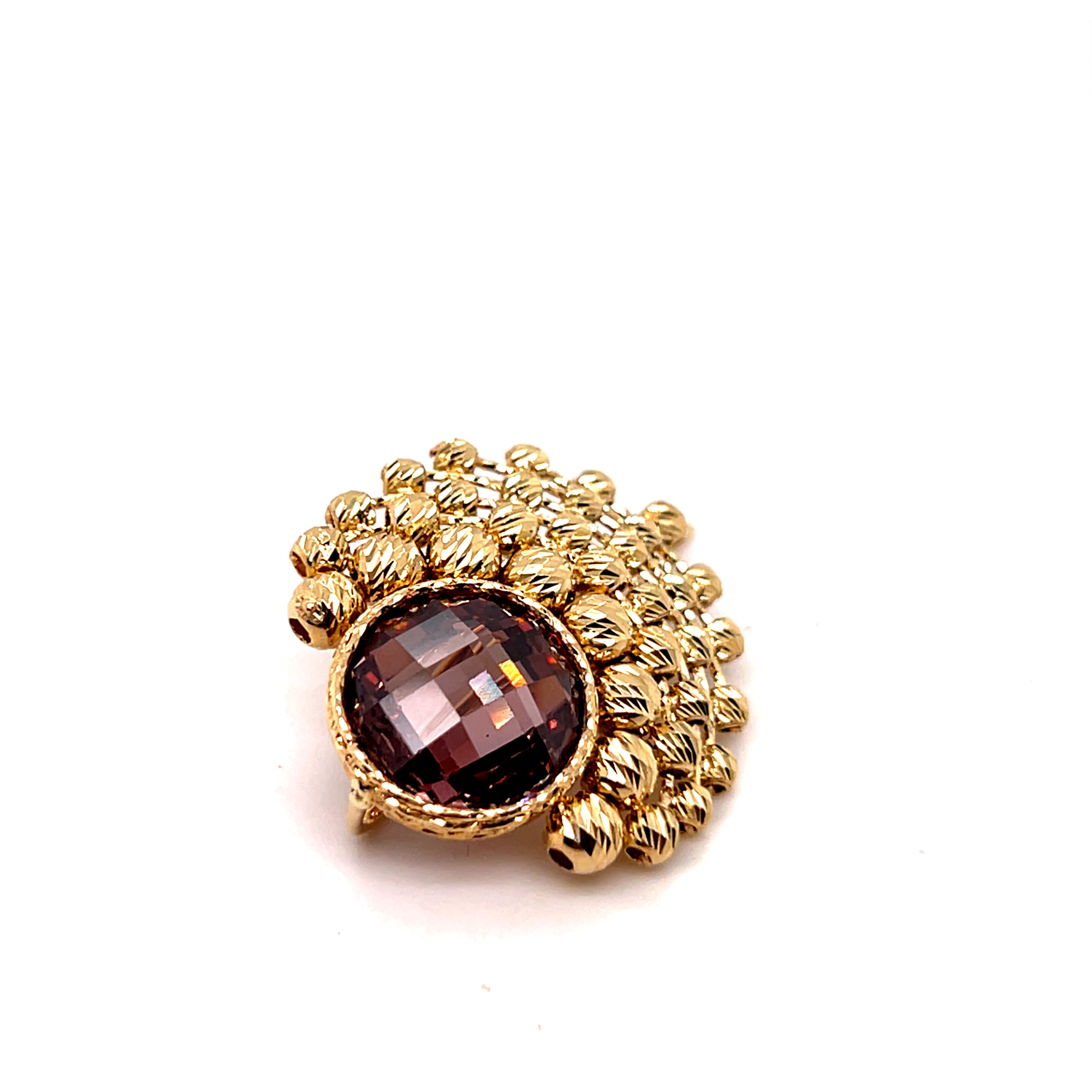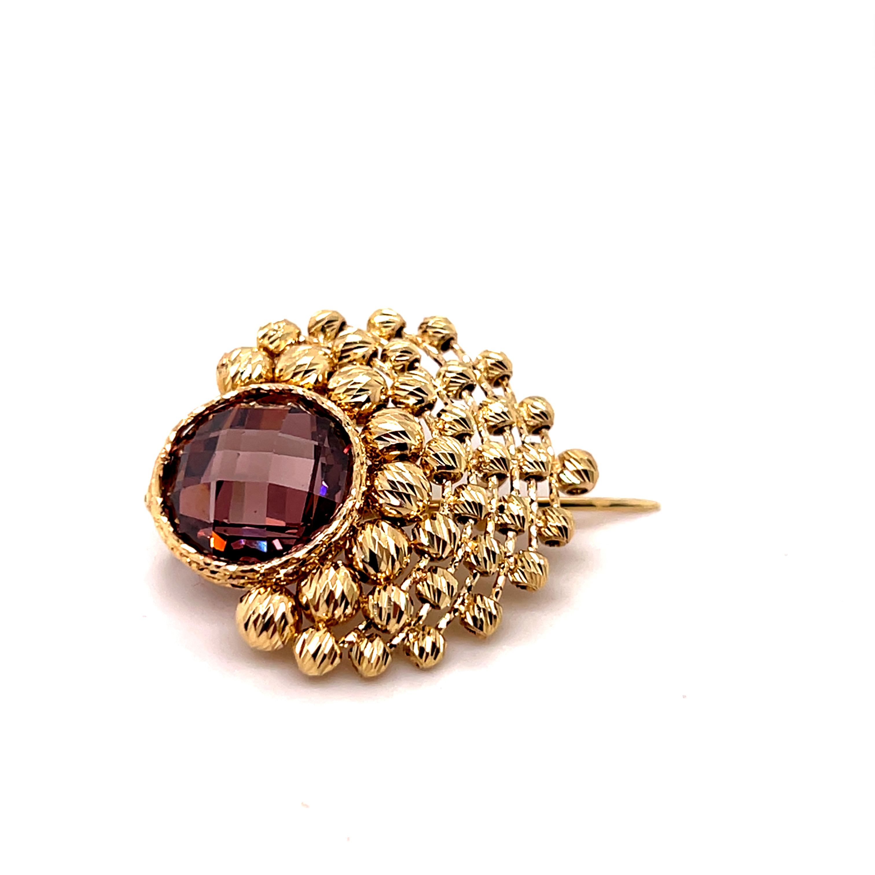 Брошка от ”Jacklin hugasian” в жълто злато с опушен топаз и аметист