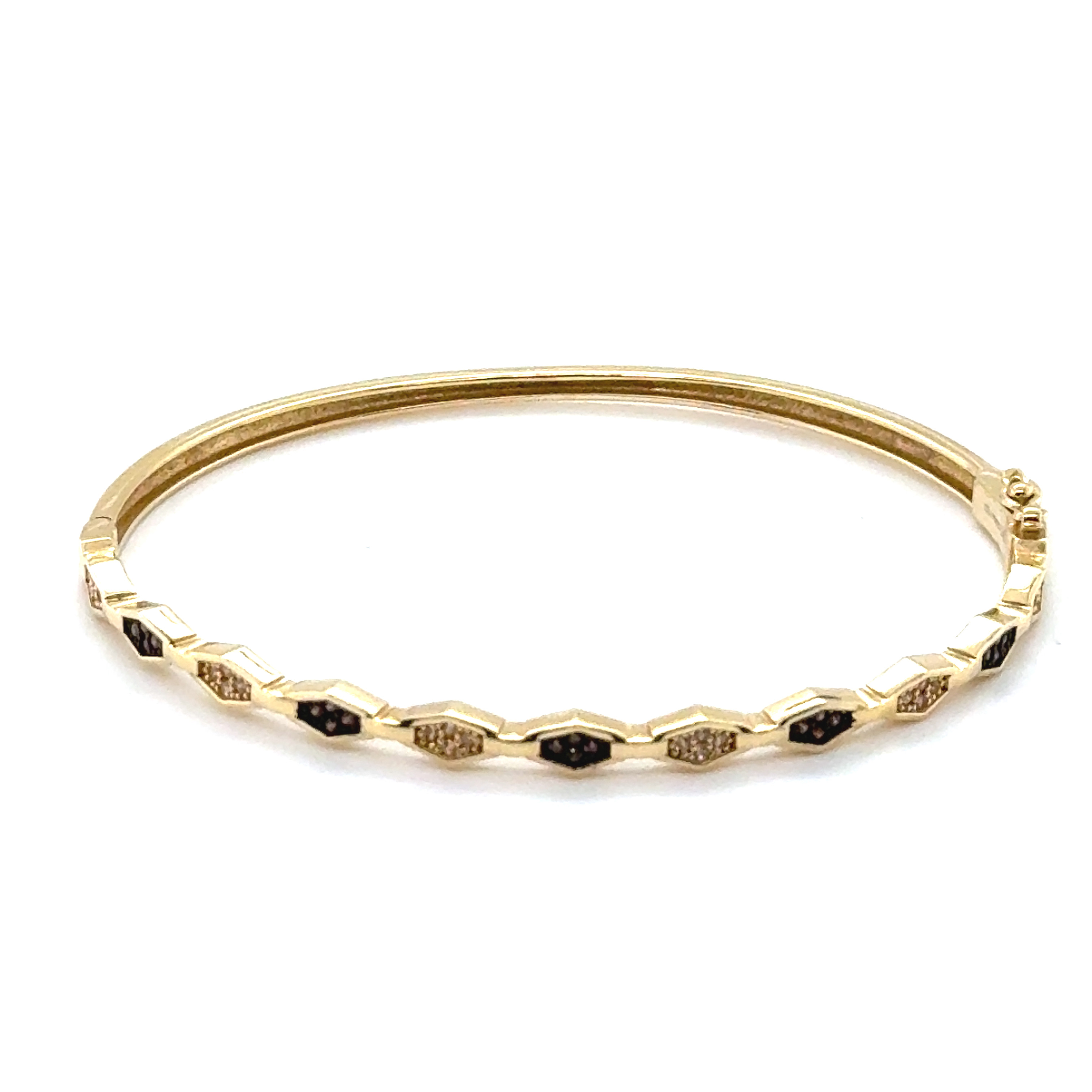 Твърда гривна от “Jacklin hugasian” в жълто злато гланц с циркони и опушен топаз.