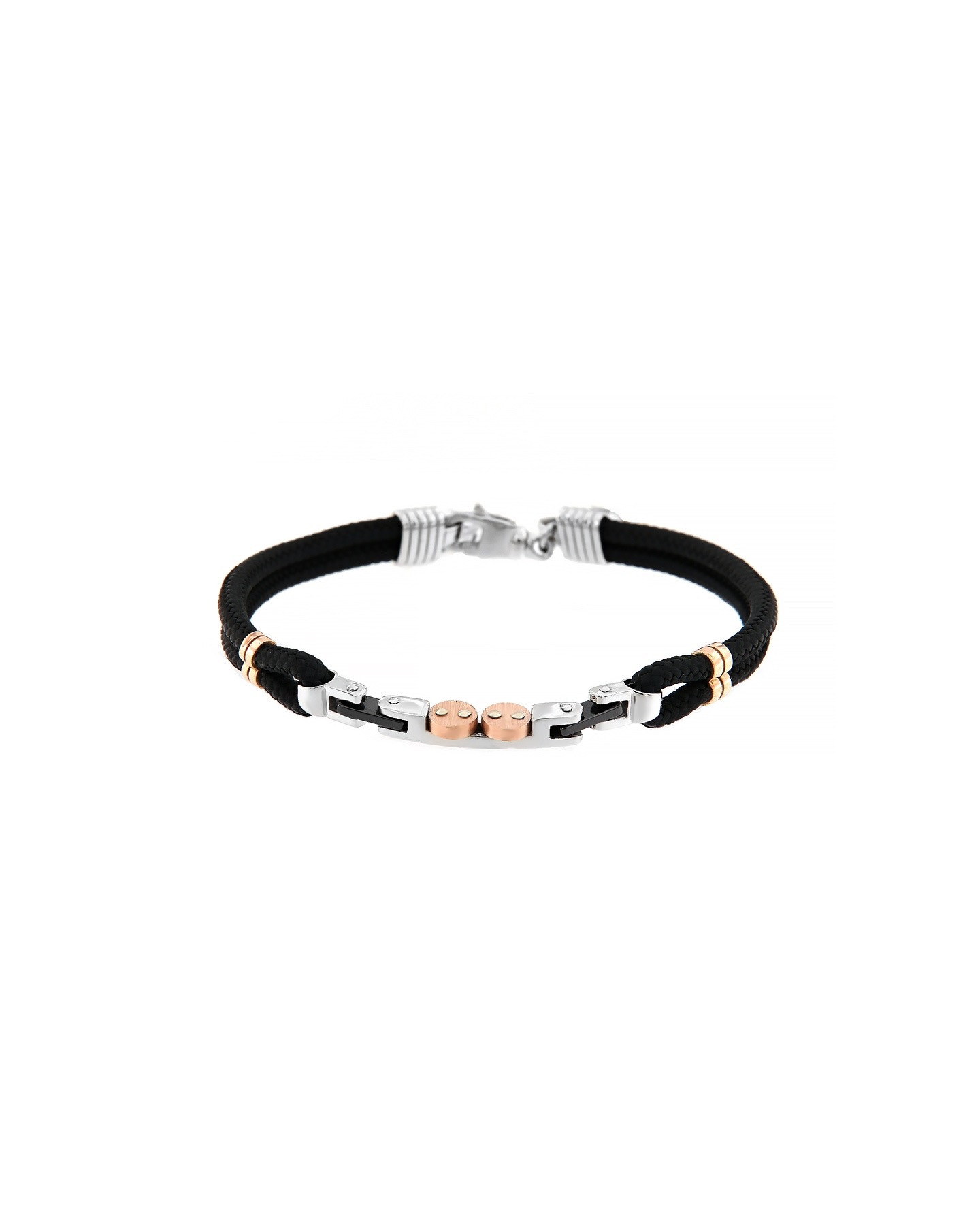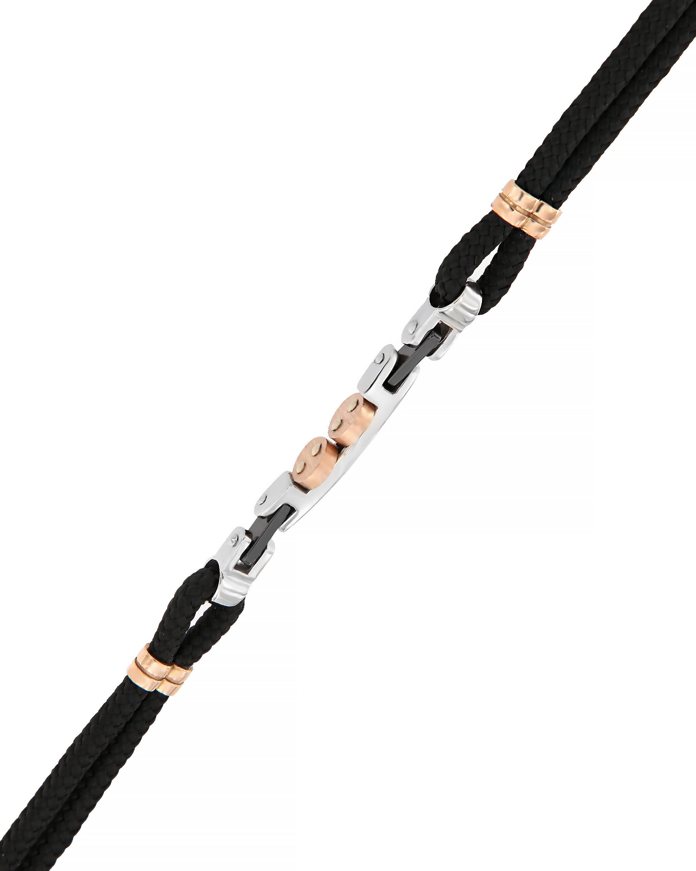 Гривна от „Jacklin hugasian“ в бяло,розово и черно злато с копринен конец .