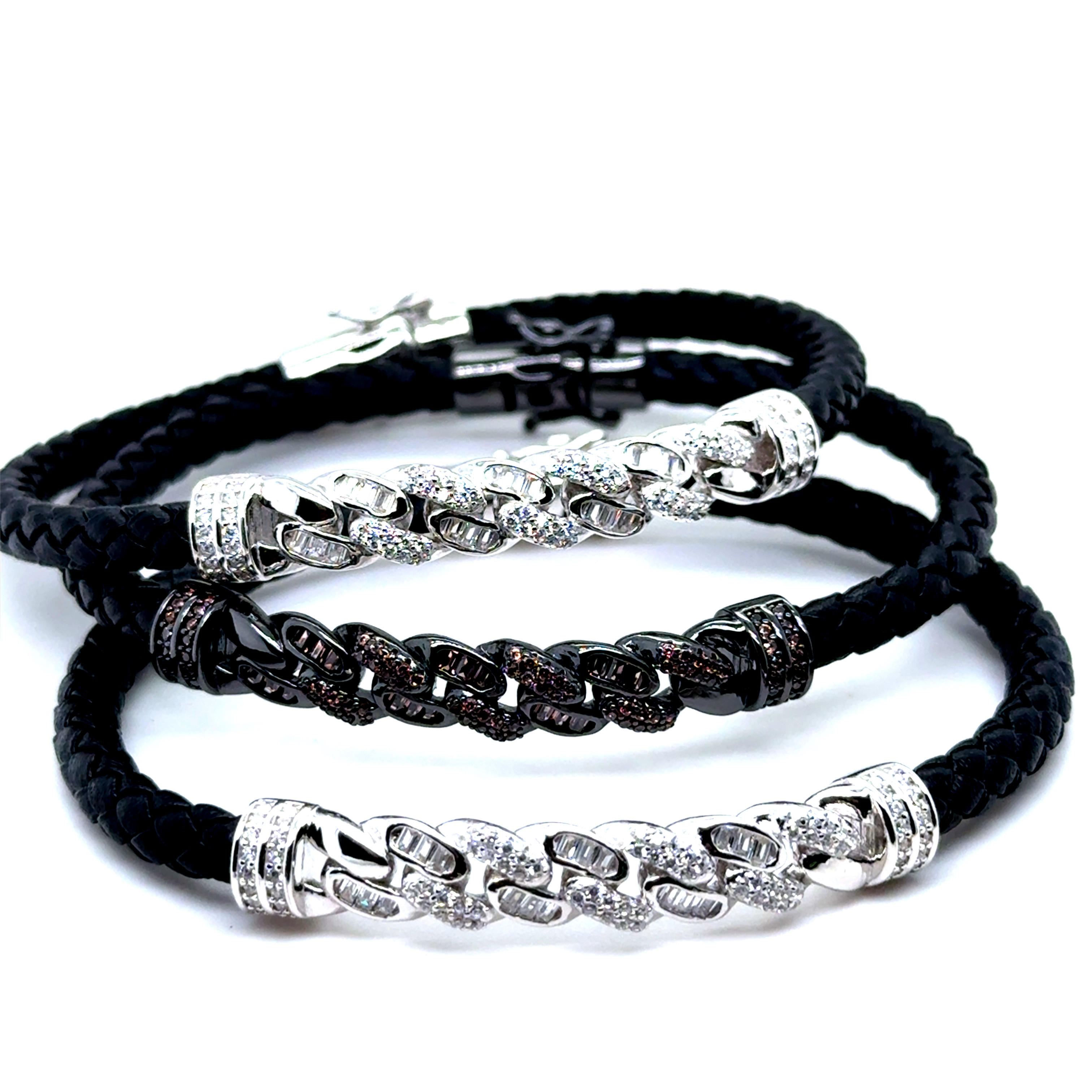 Гривна от „Jacklin hugasian“ в сребро с кожа и циркони/оксидирано сребро с опушен топаз