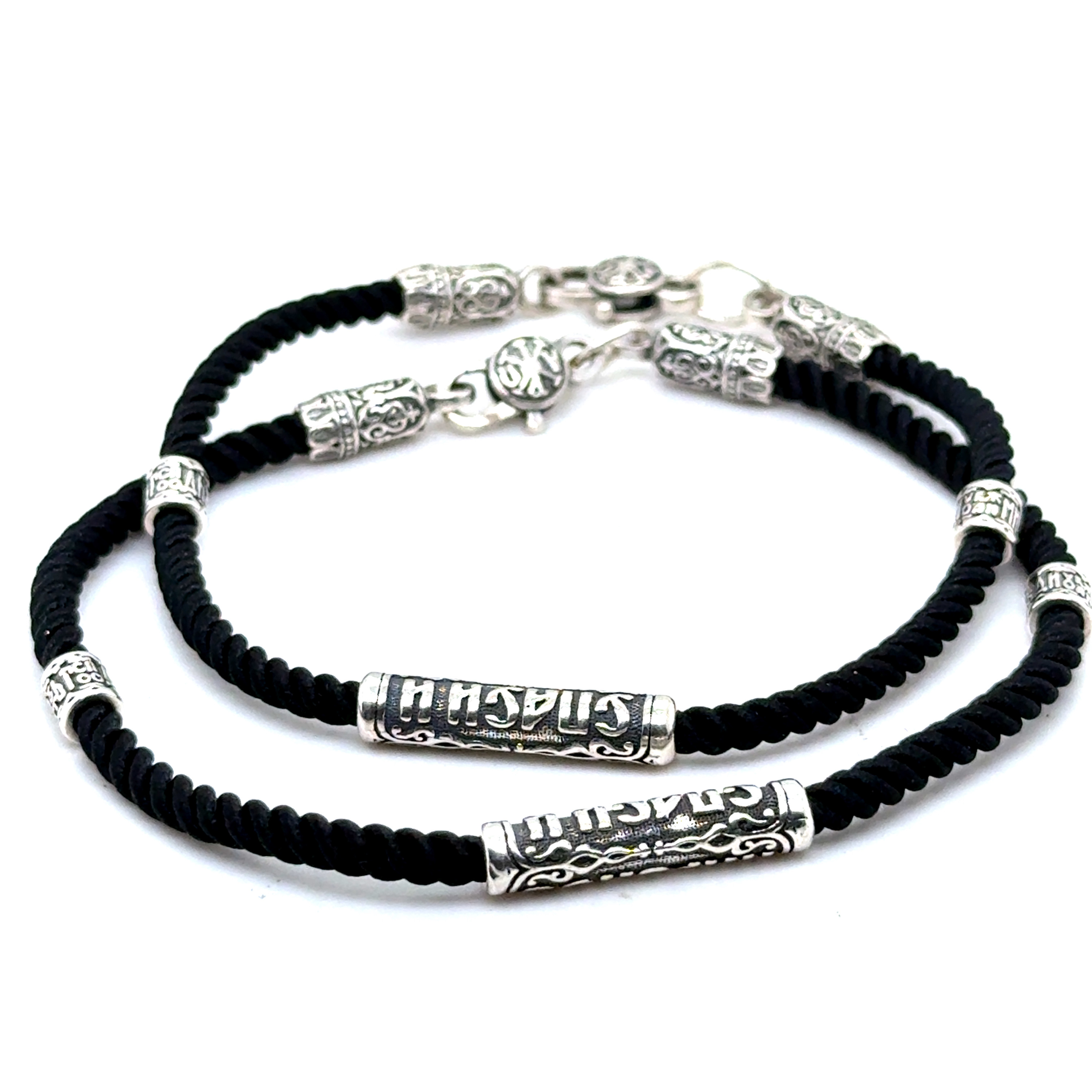 Гривна от „Jacklin hugasian“ в сребро с оксидация и копринен конец .
