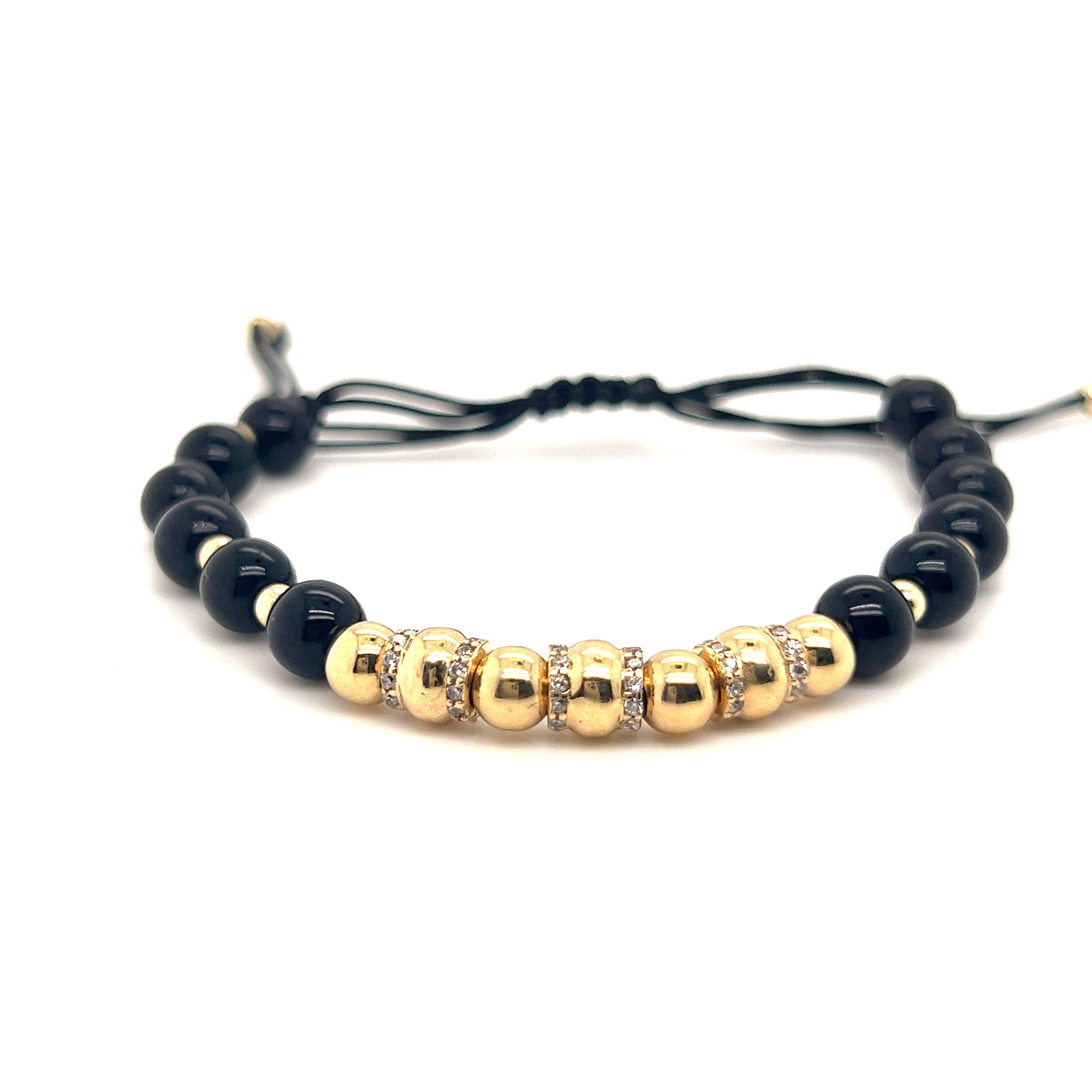 Гривна от „Jacklin hugasian“ в жълто злато с текстилен конец , оникс и цирконии.