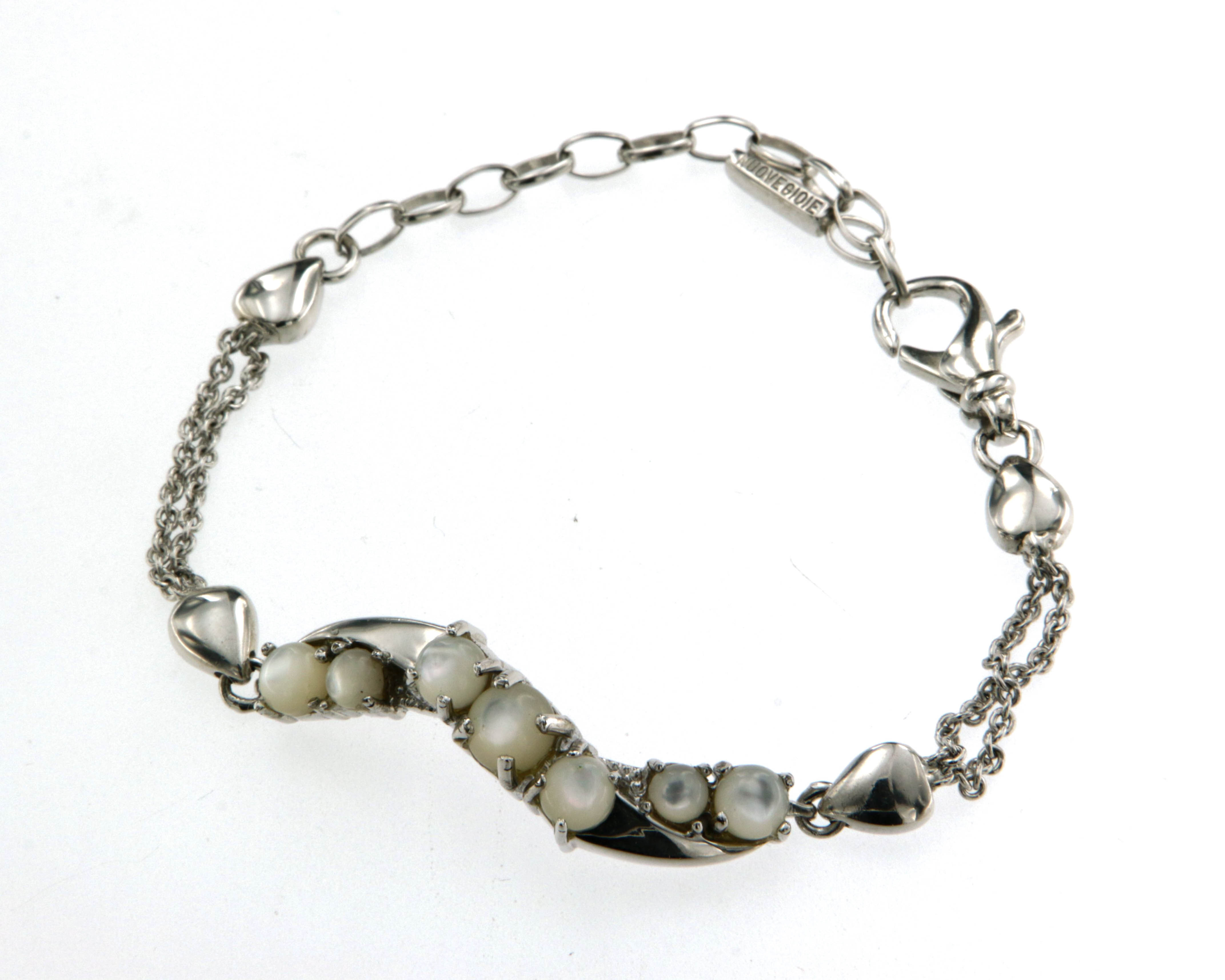 Гривна от "Jacklin hugasian" с бял седеф и цирконии.