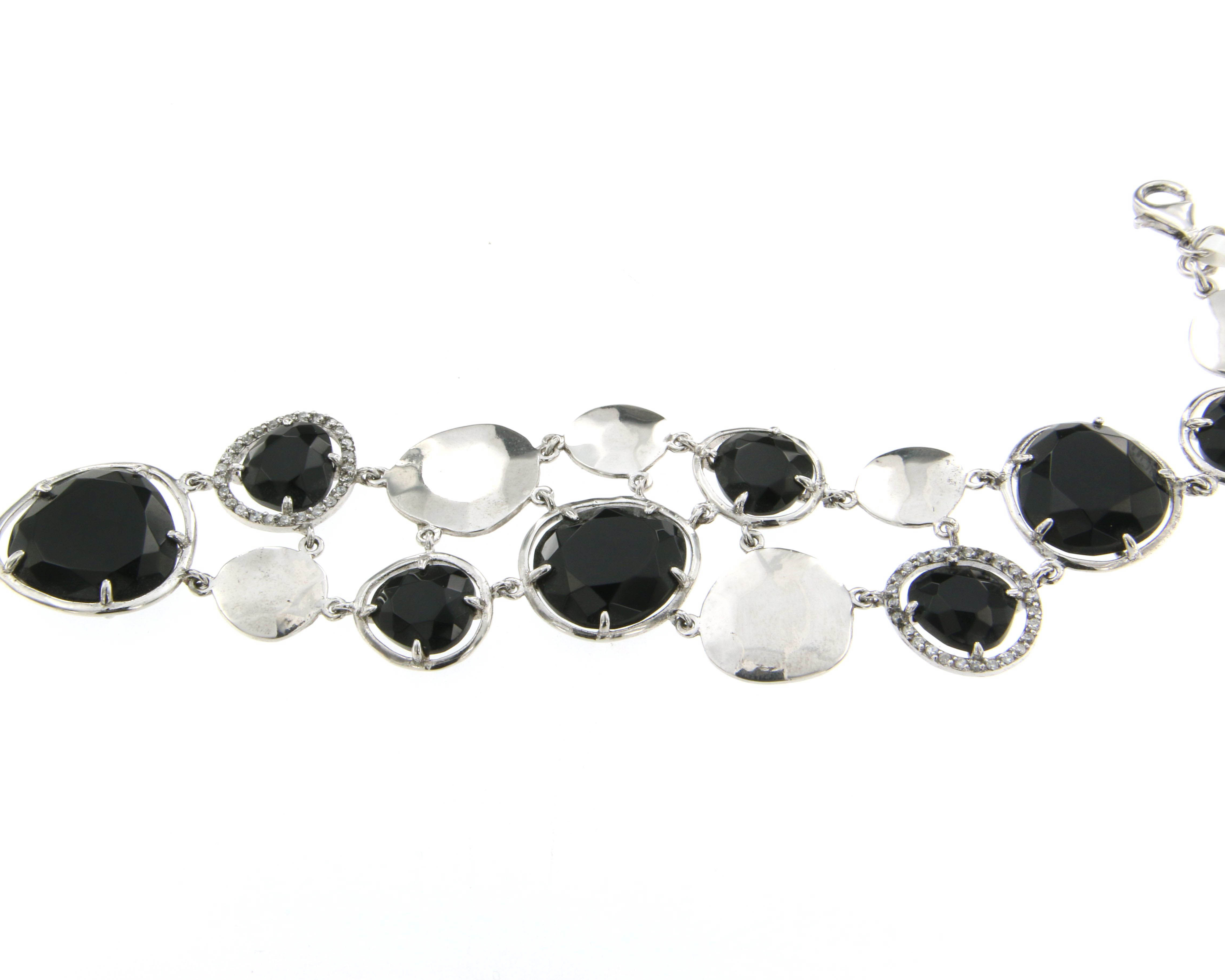 Гривна от "Jacklin hugasian" сребро с цирконии и черни оникси. Дължина гривна 21 см.