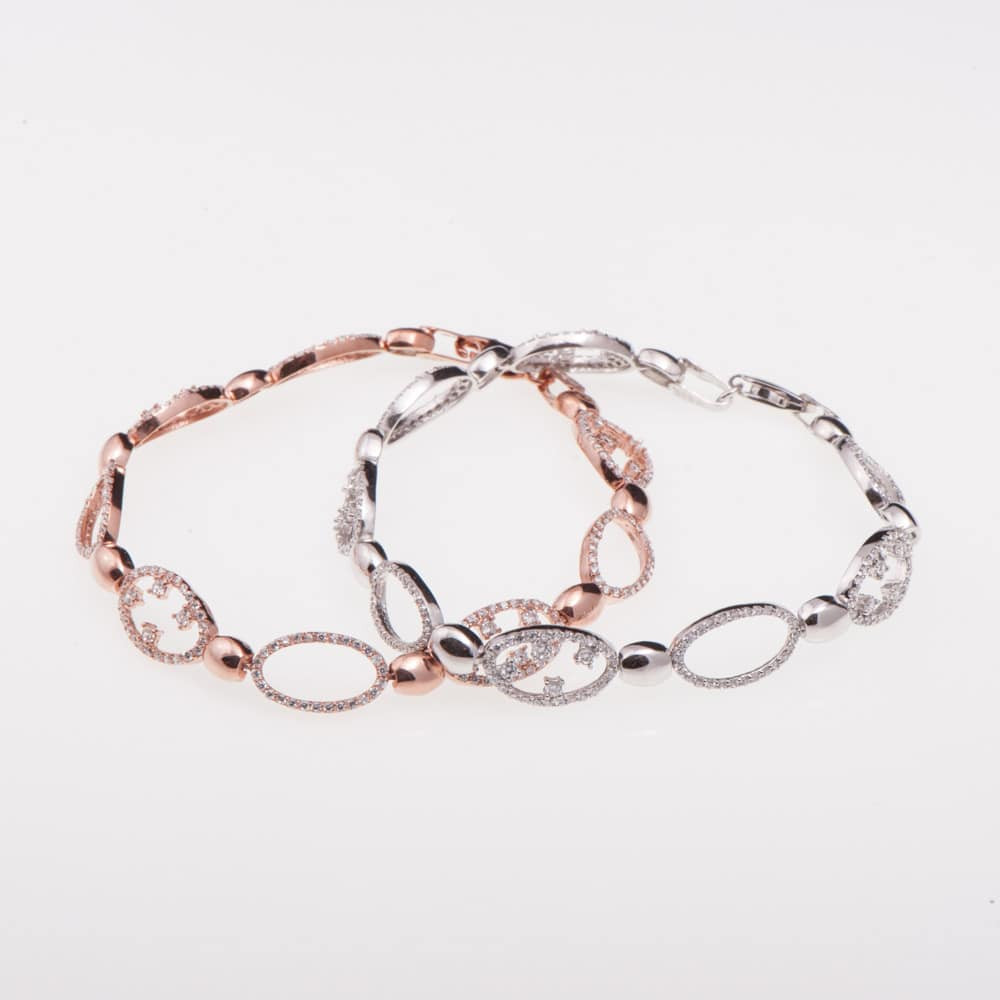 Гривна от "Jacklin hugasian" в розово сребро с цирконии. Дължина гривна 19 см.
