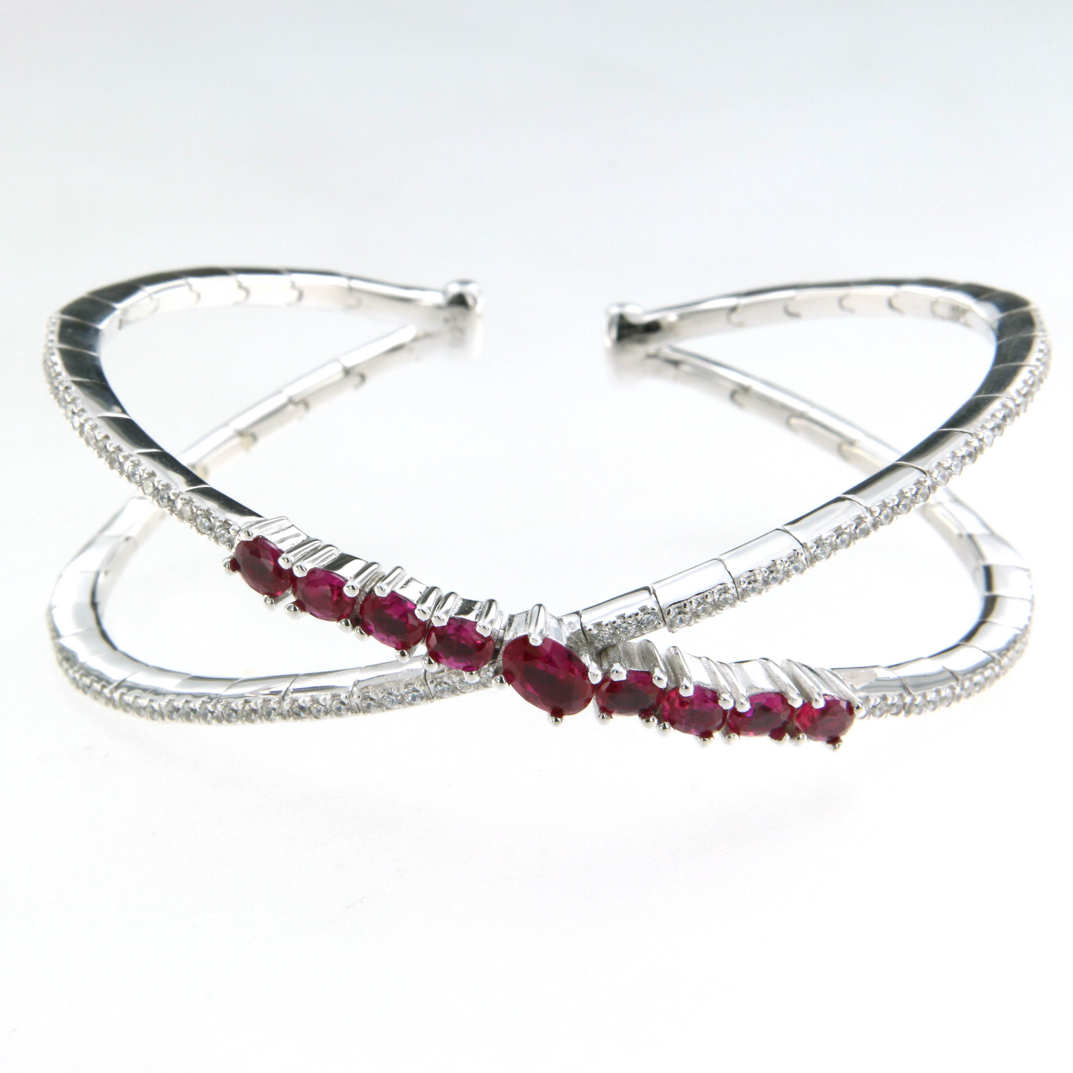 Гривна от “Jacklin hugasian” в сребро гланц с цирконии и червен рубин. Диаметър гривна 6.00 см. Произход Италия.