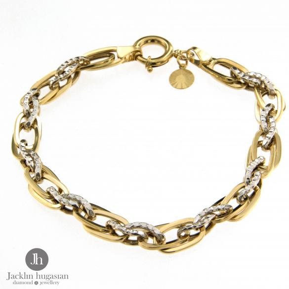 Гривна от "Jacklin hugasian" в жълто и бяло злато гланц. Дължина гривна 19 см.