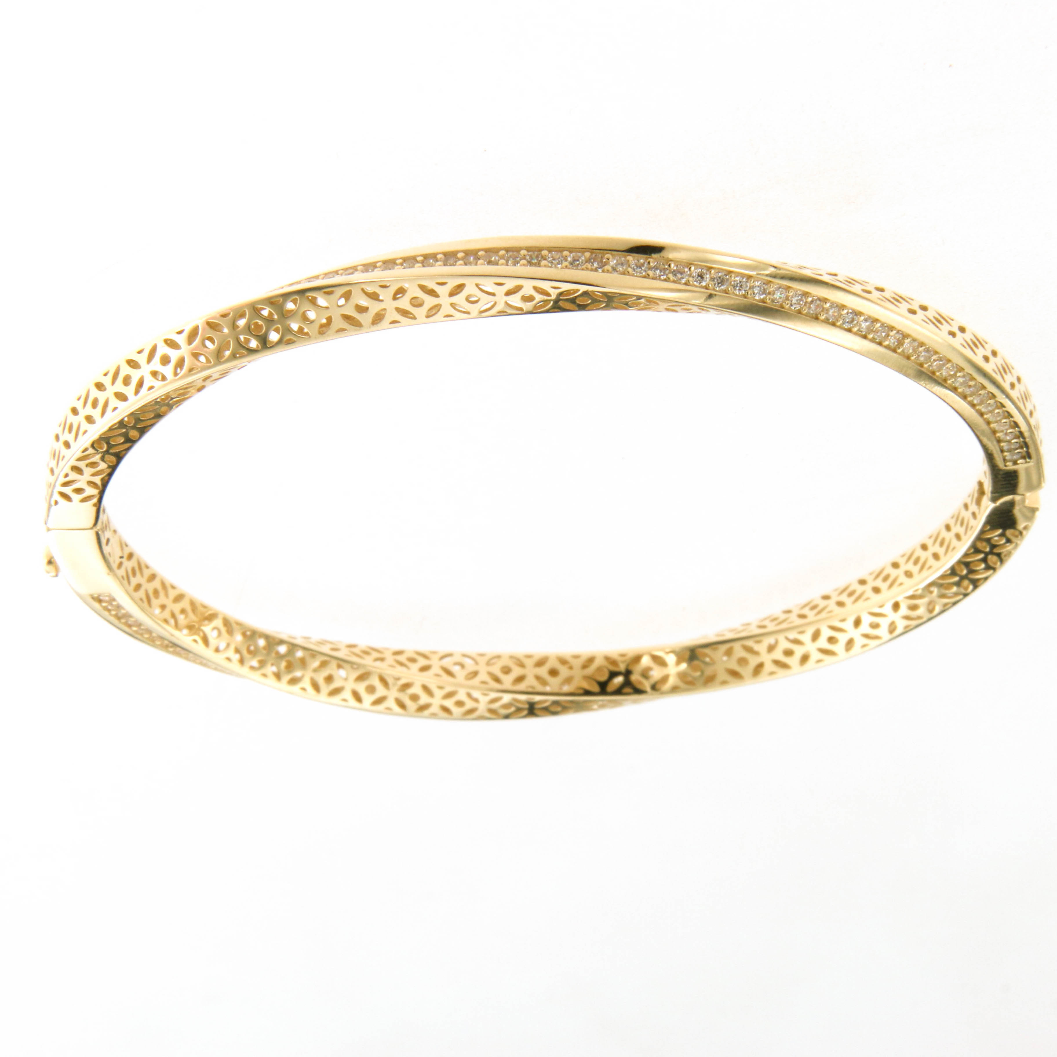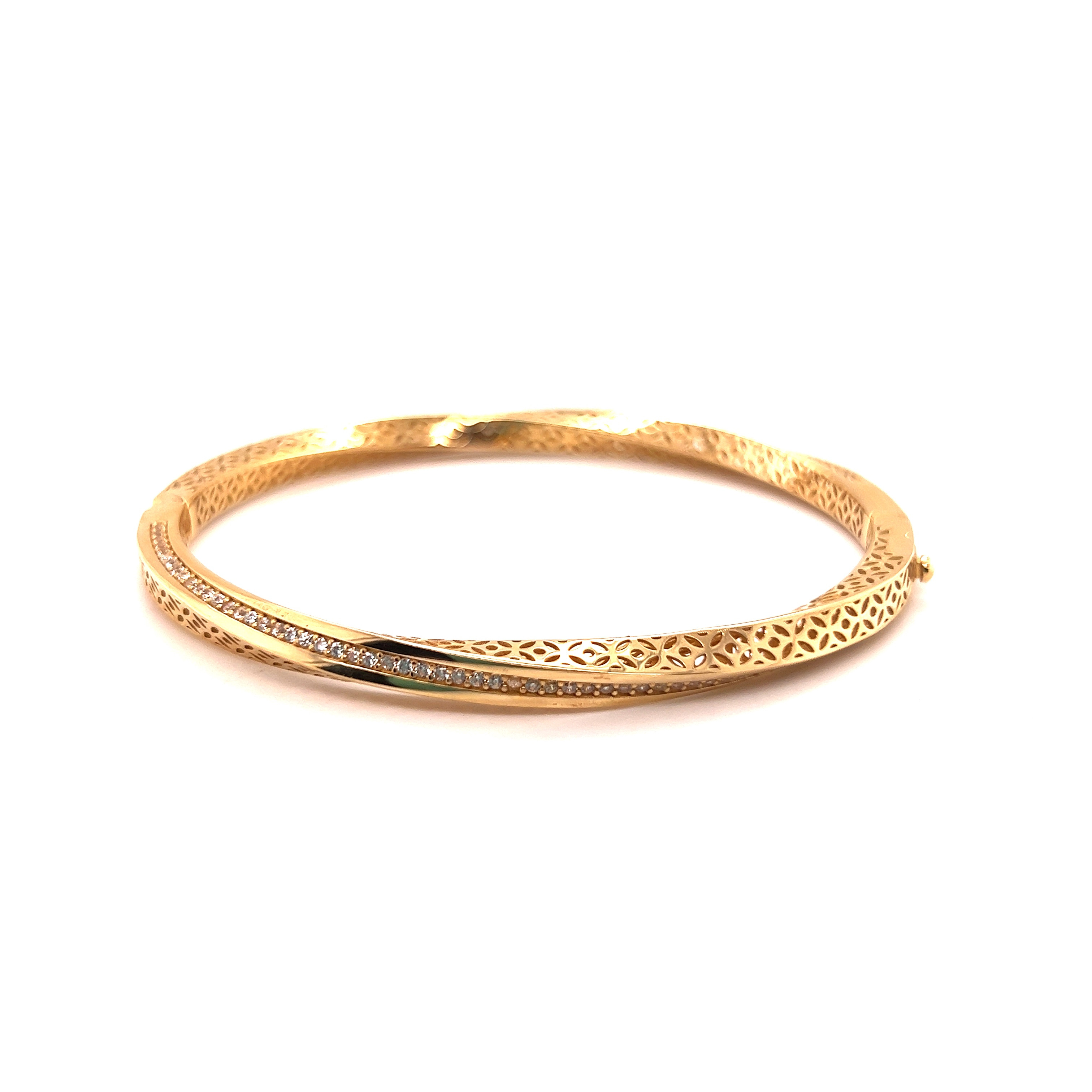 Гривна от “Jacklin hugasian” в жълто злато с цирконии и филигранна обработка.