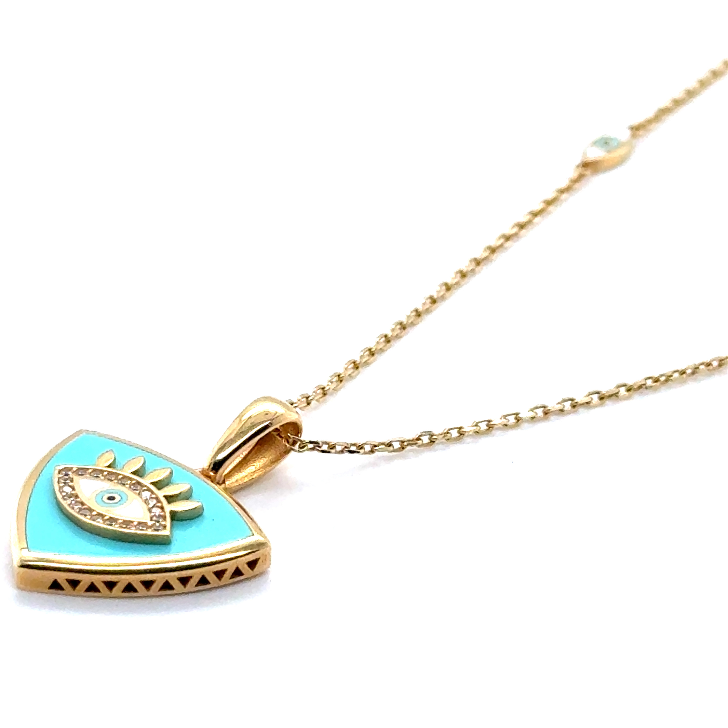 Колие от “Jacklin hugasian” в жълто злато с цветен емайл и циркони.