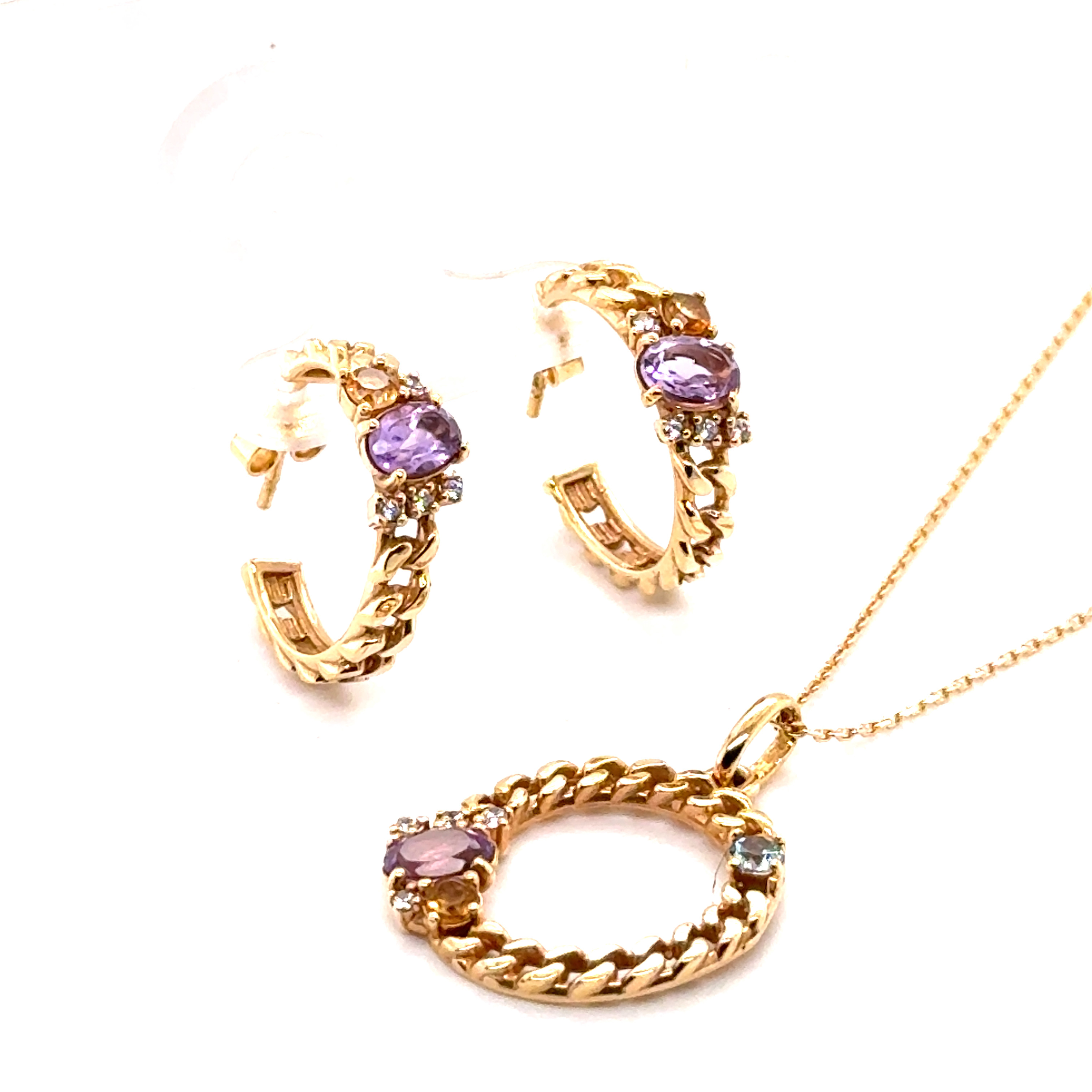 Комплект от “Jacklin hugasian” в жълто злато с аметист, цитрин и циркони.
