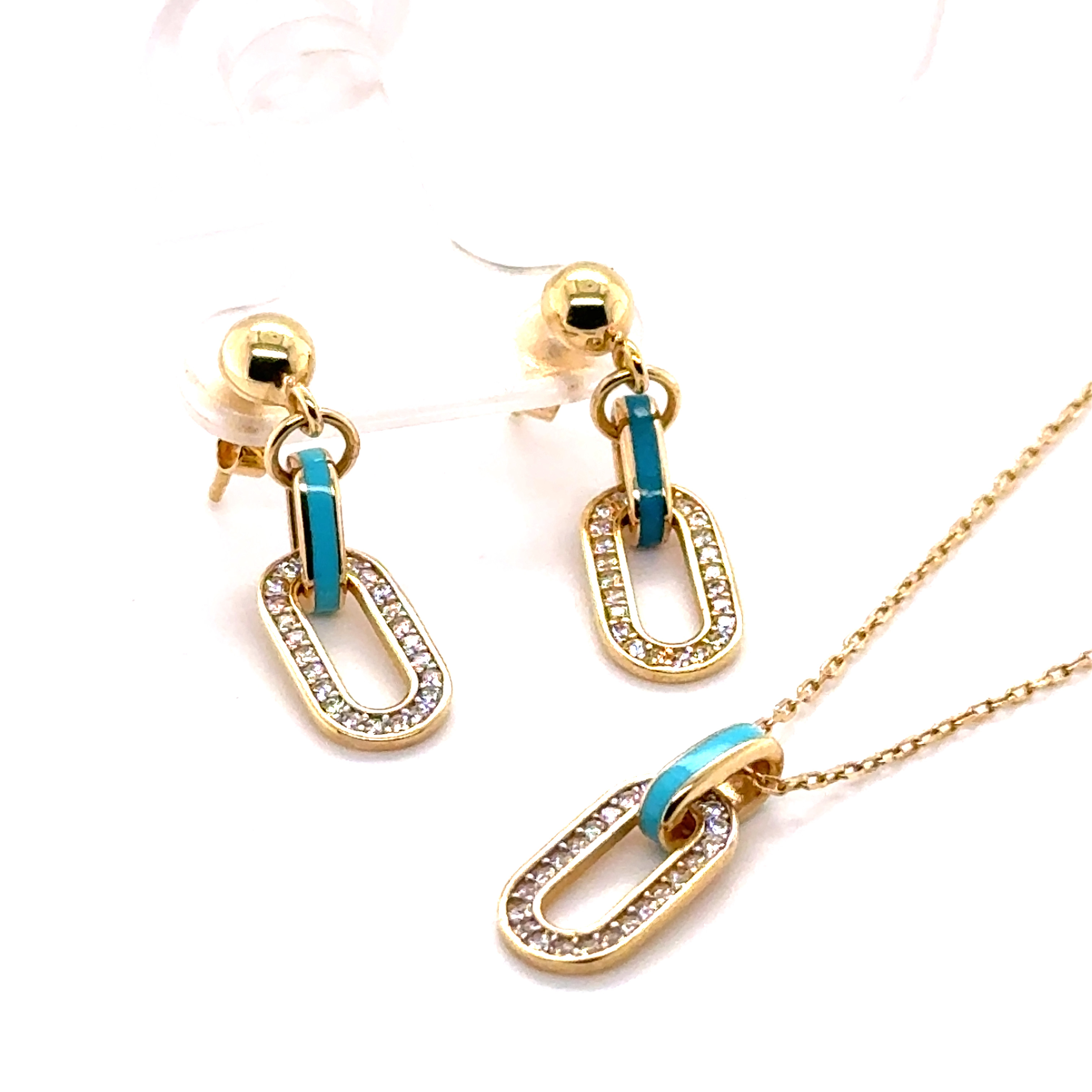 Комплект от “Jacklin hugasian” в жълто злато с емайл и циркони.