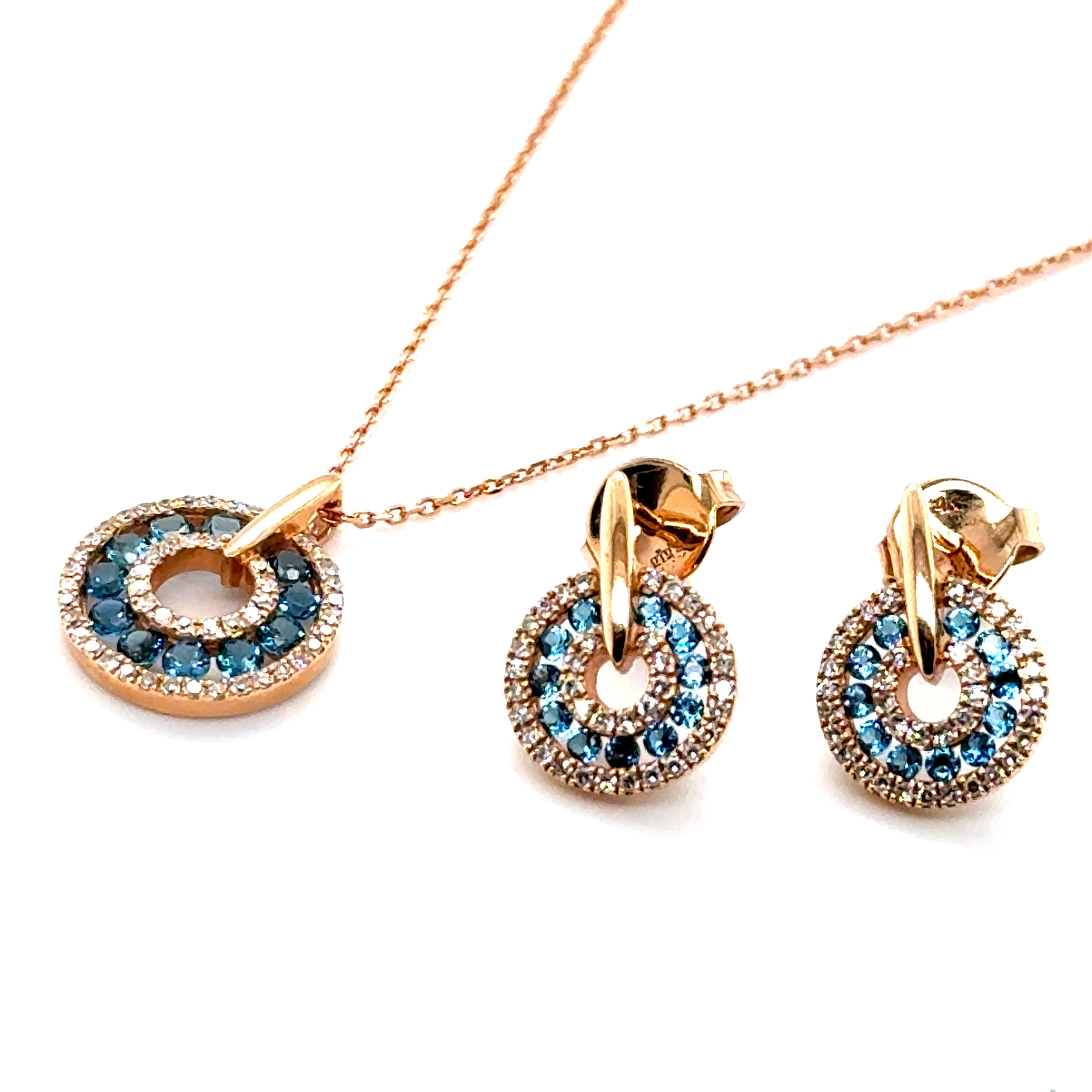 Комплект колие и обеци от “Jacklin hugasian” в розово злато с диаманти и лондон топаз