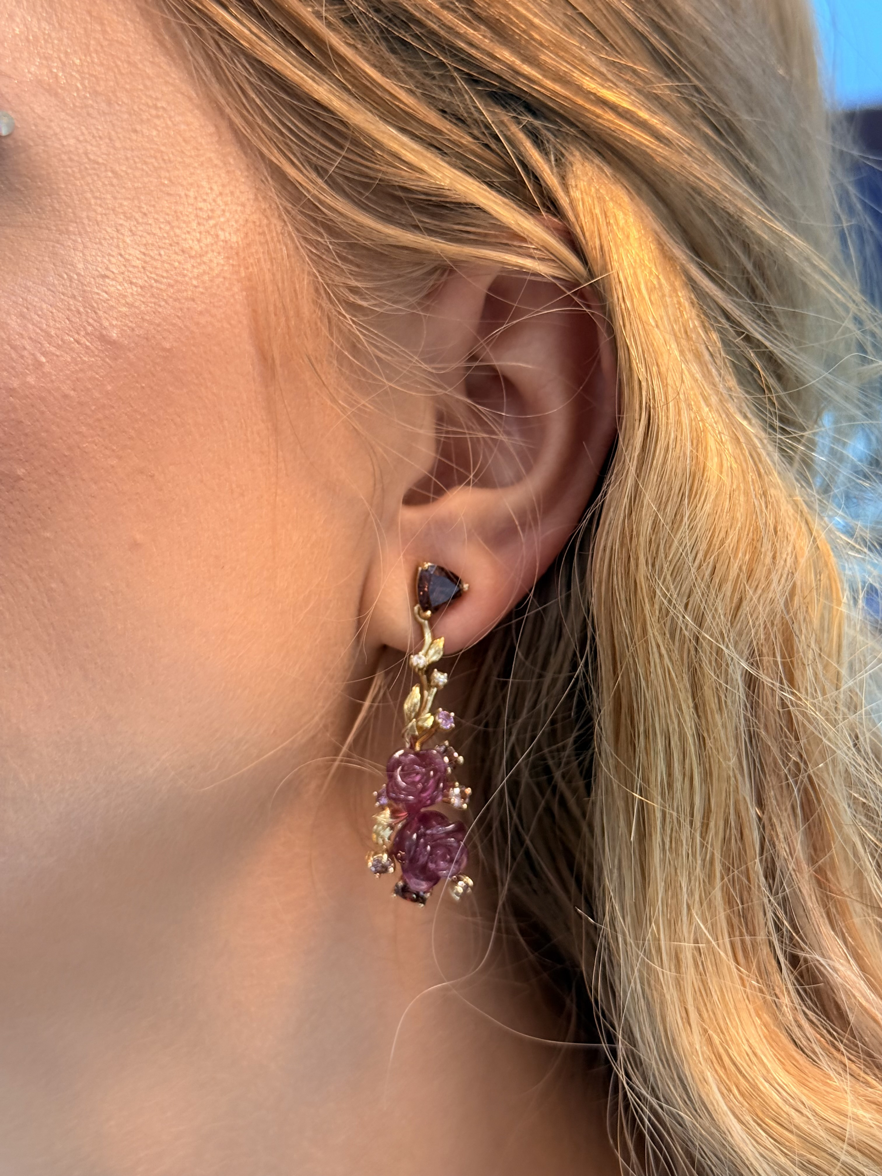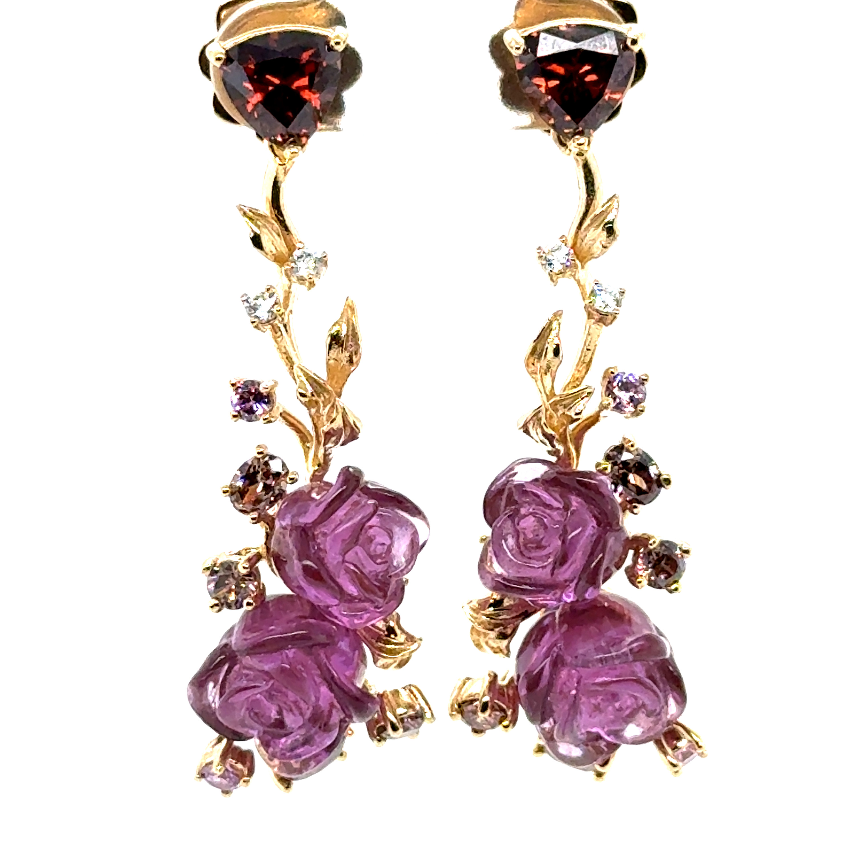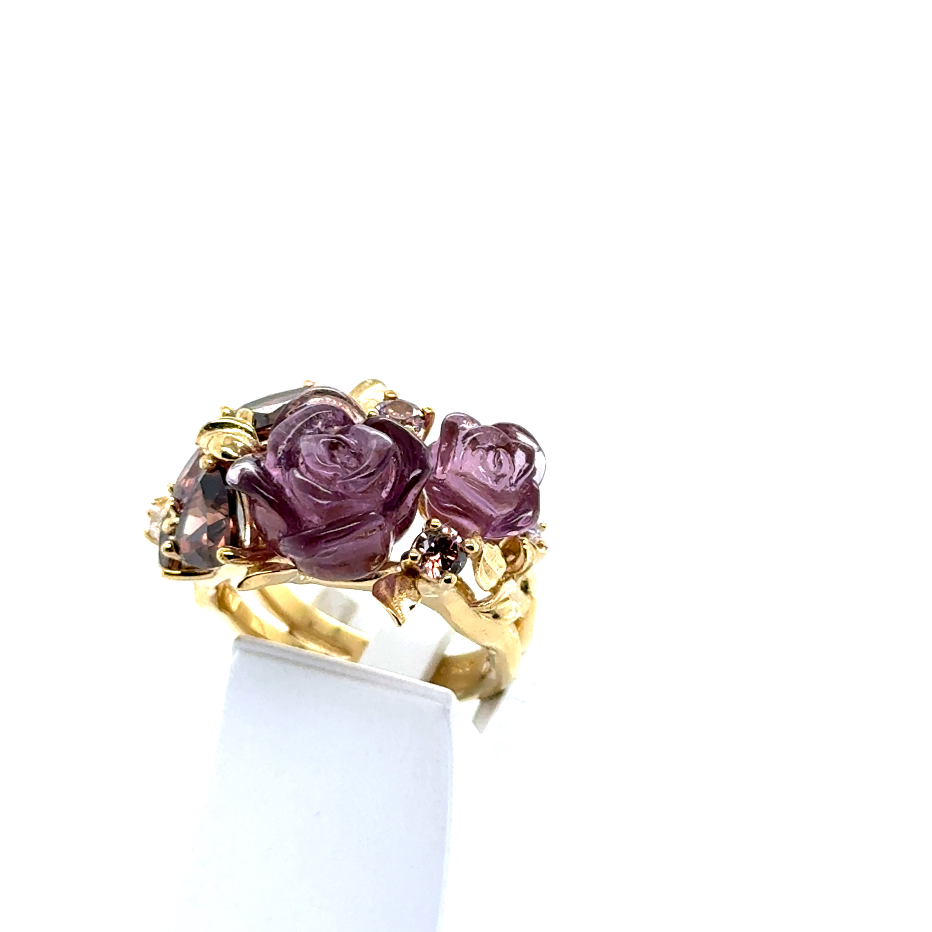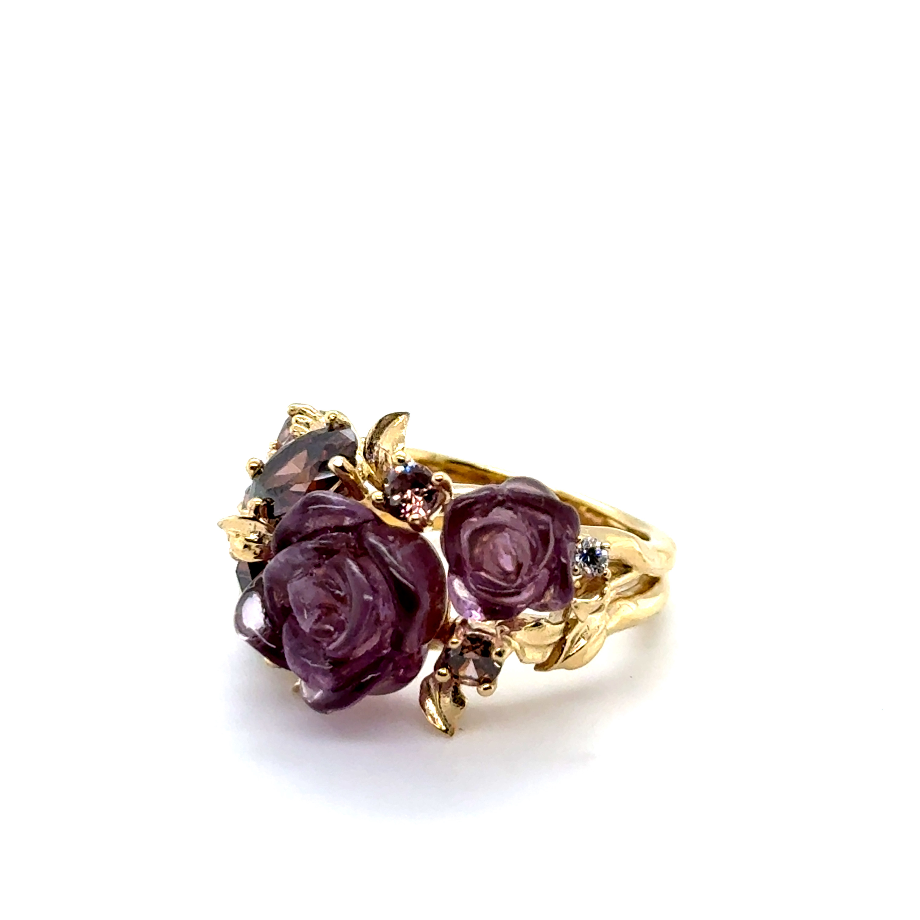 Комплект, обеци и пръстен от “Jacklin hugasian” в сребро с позлата ,аметист и опушен топаз