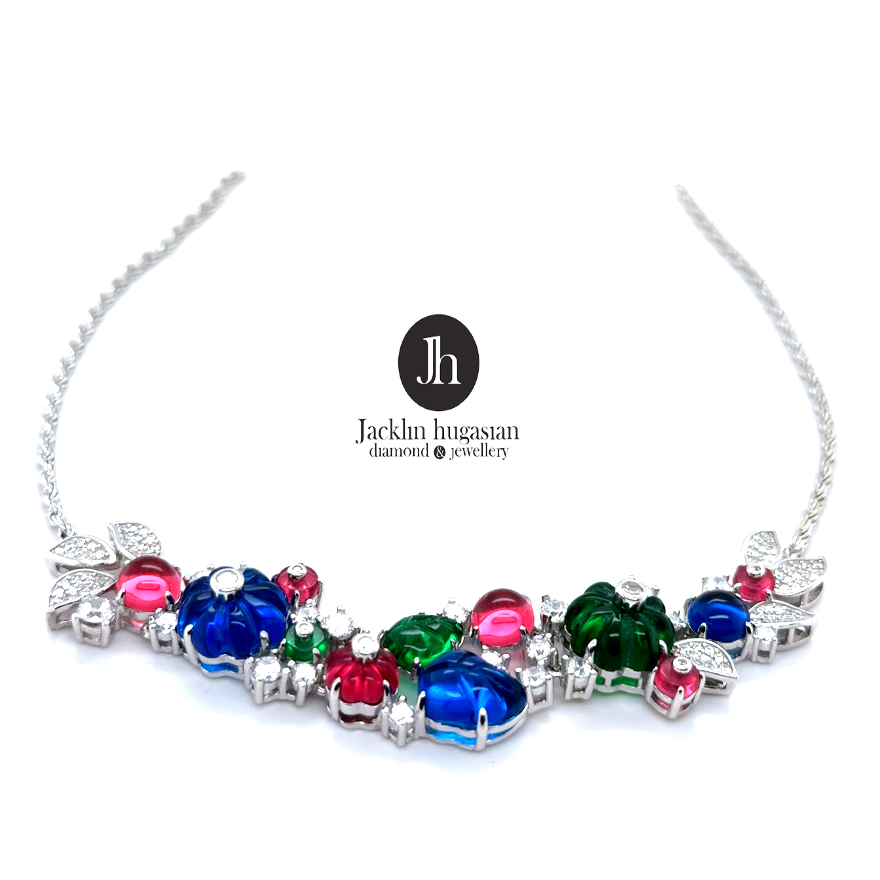 Колие от “Jacklin hugasian” в сребро с цветен кварц и циркони.