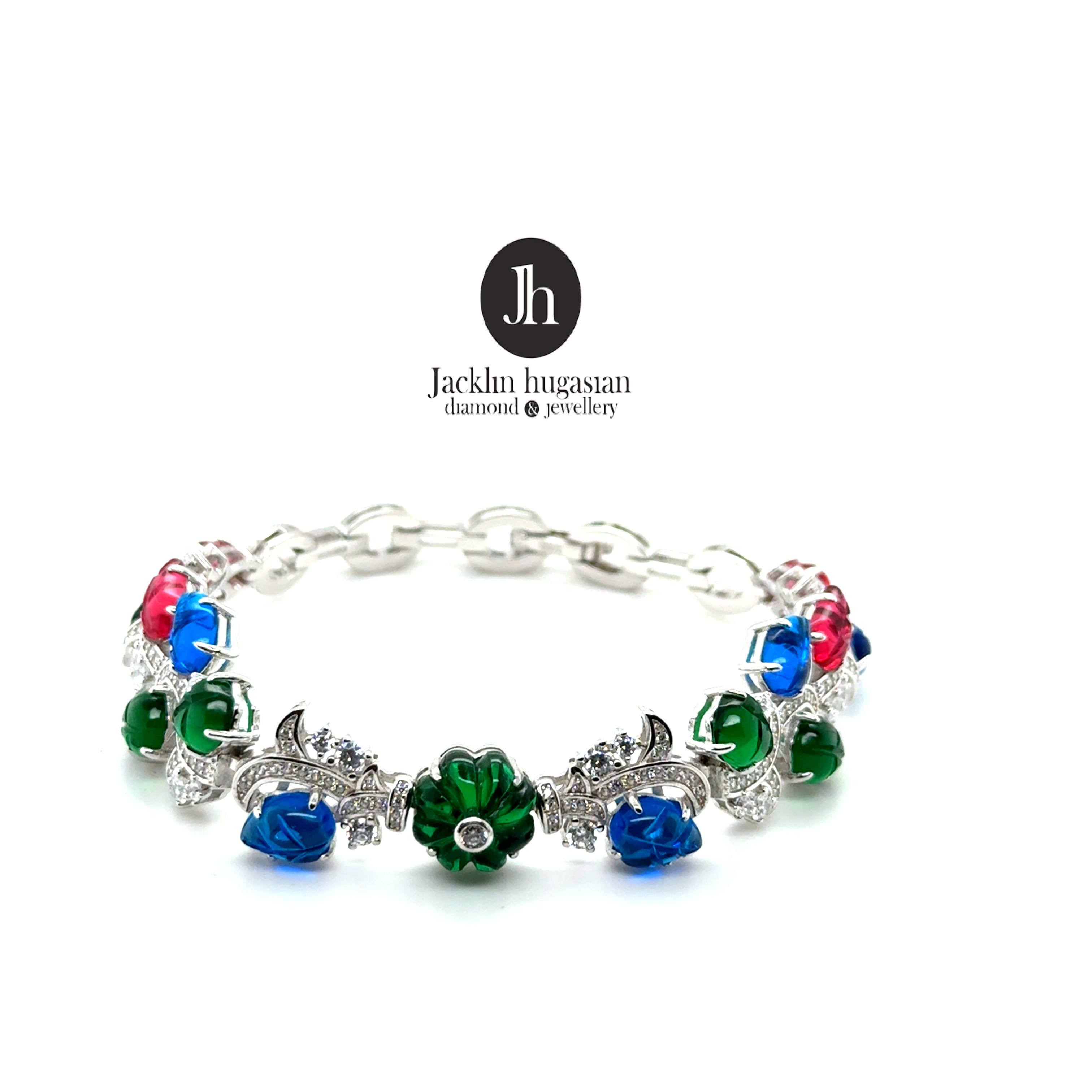 Комплект колие и гривна от “Jacklin hugasian” в сребро с цветен кварц и циркони.