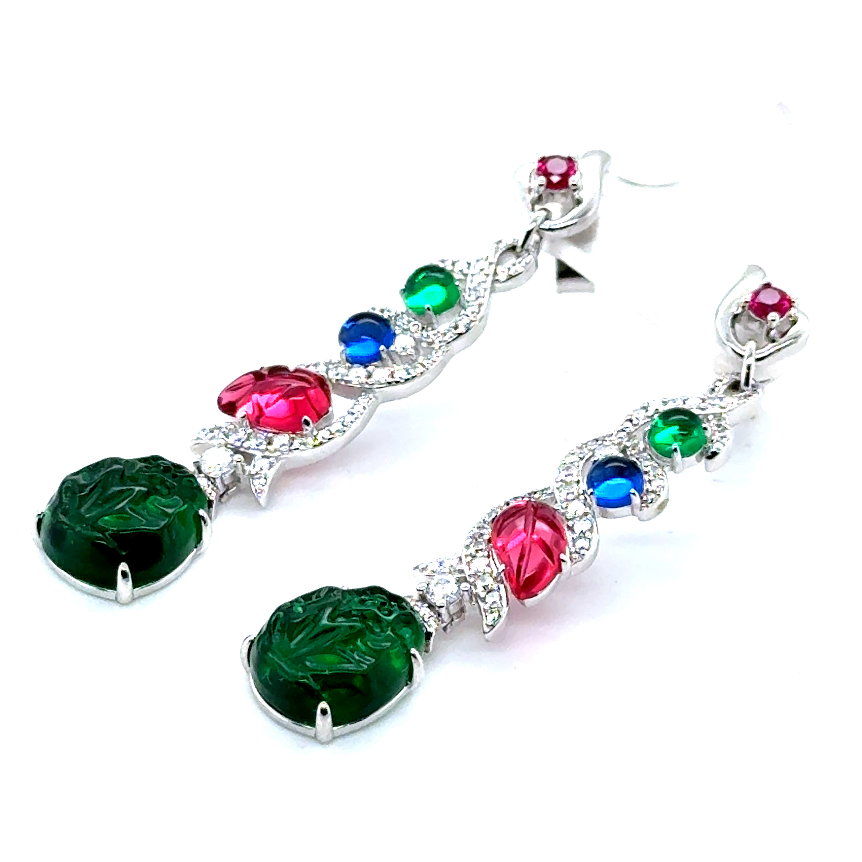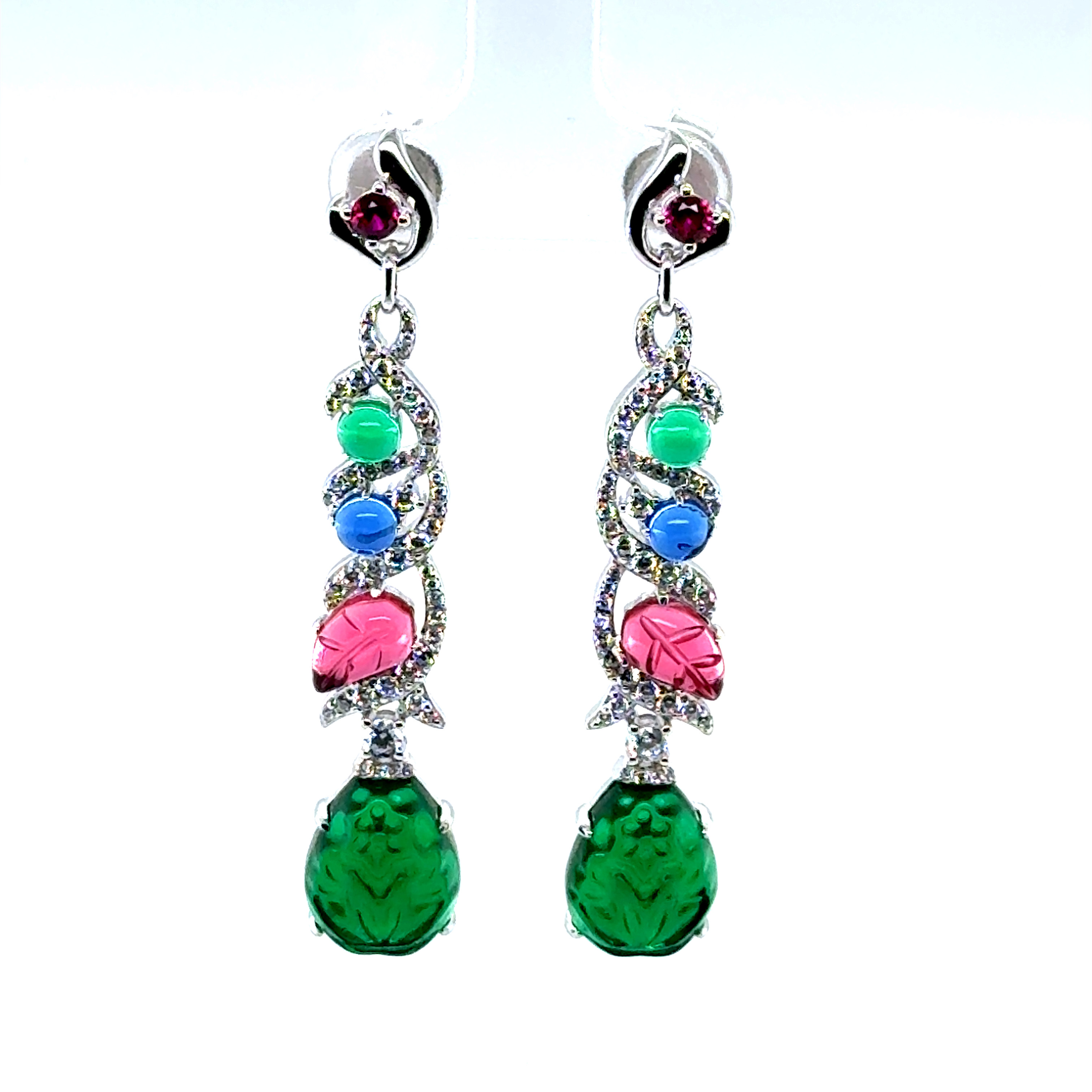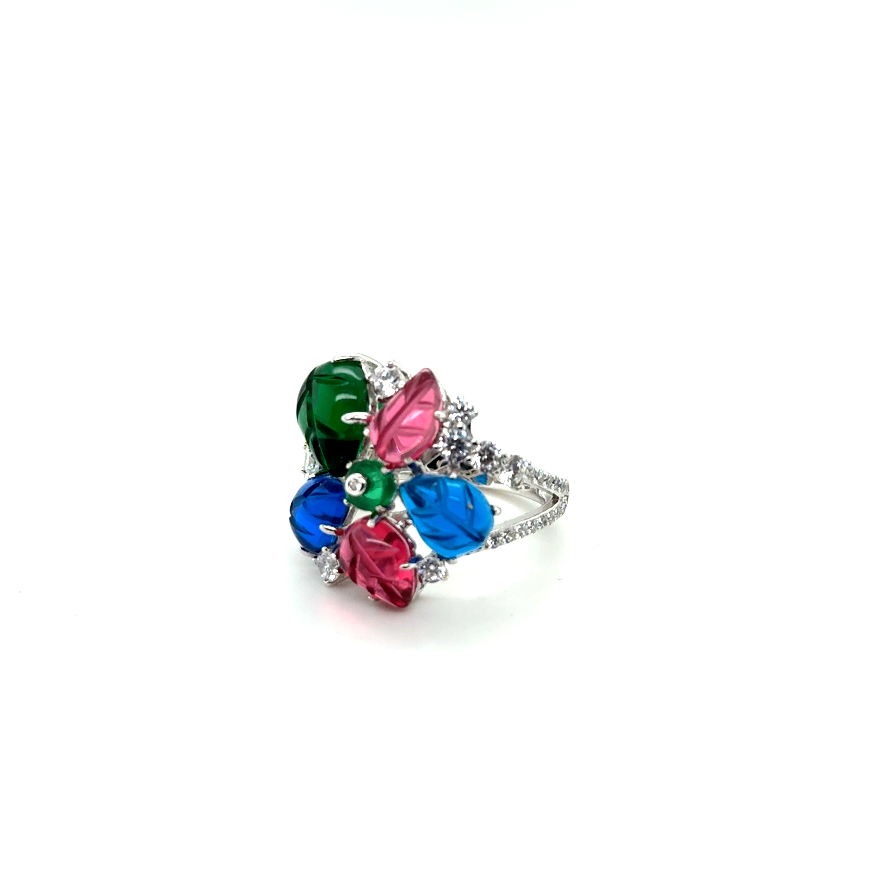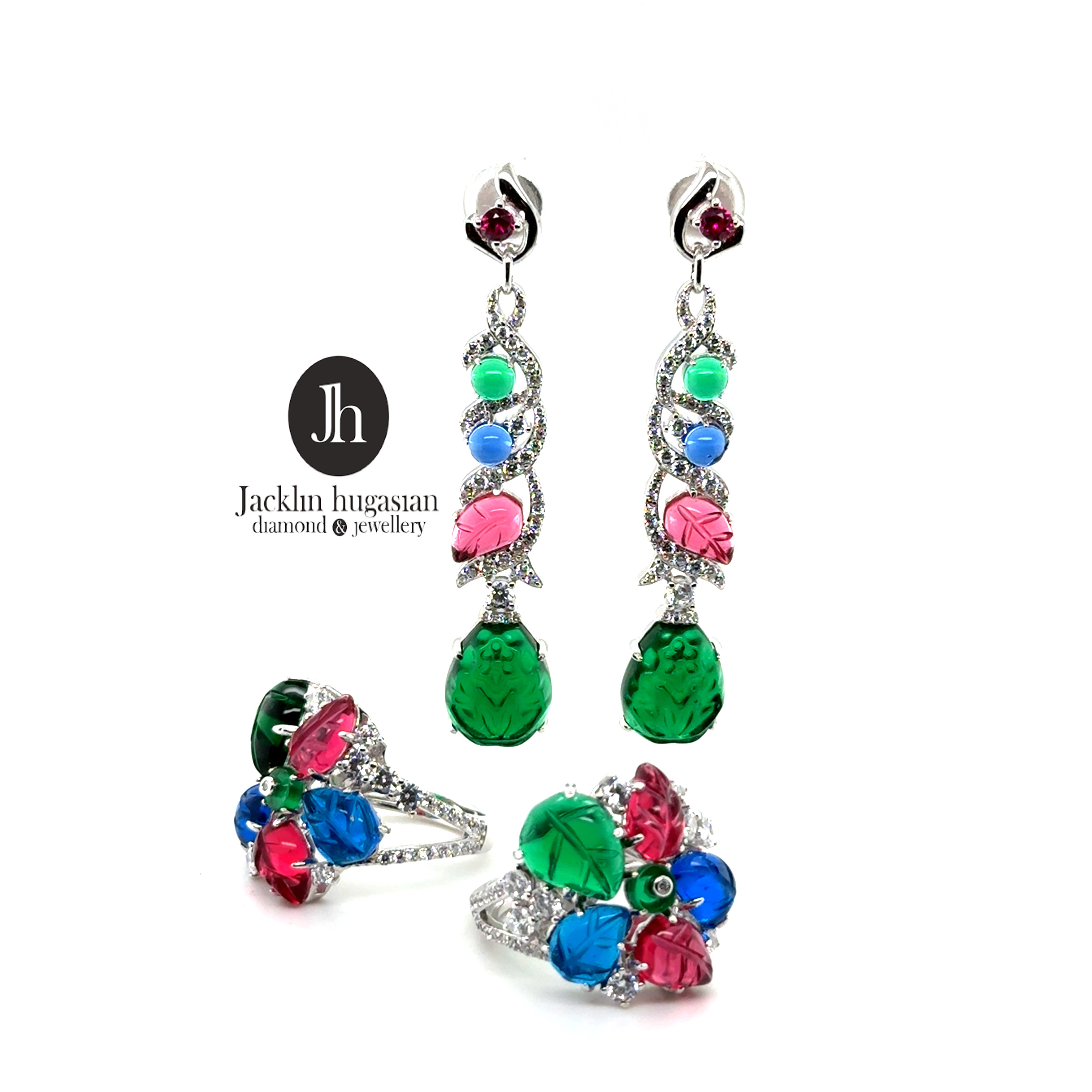 Комплект пръстен и обеци от “Jacklin hugasian” в сребро с цветен кварц и циркони.