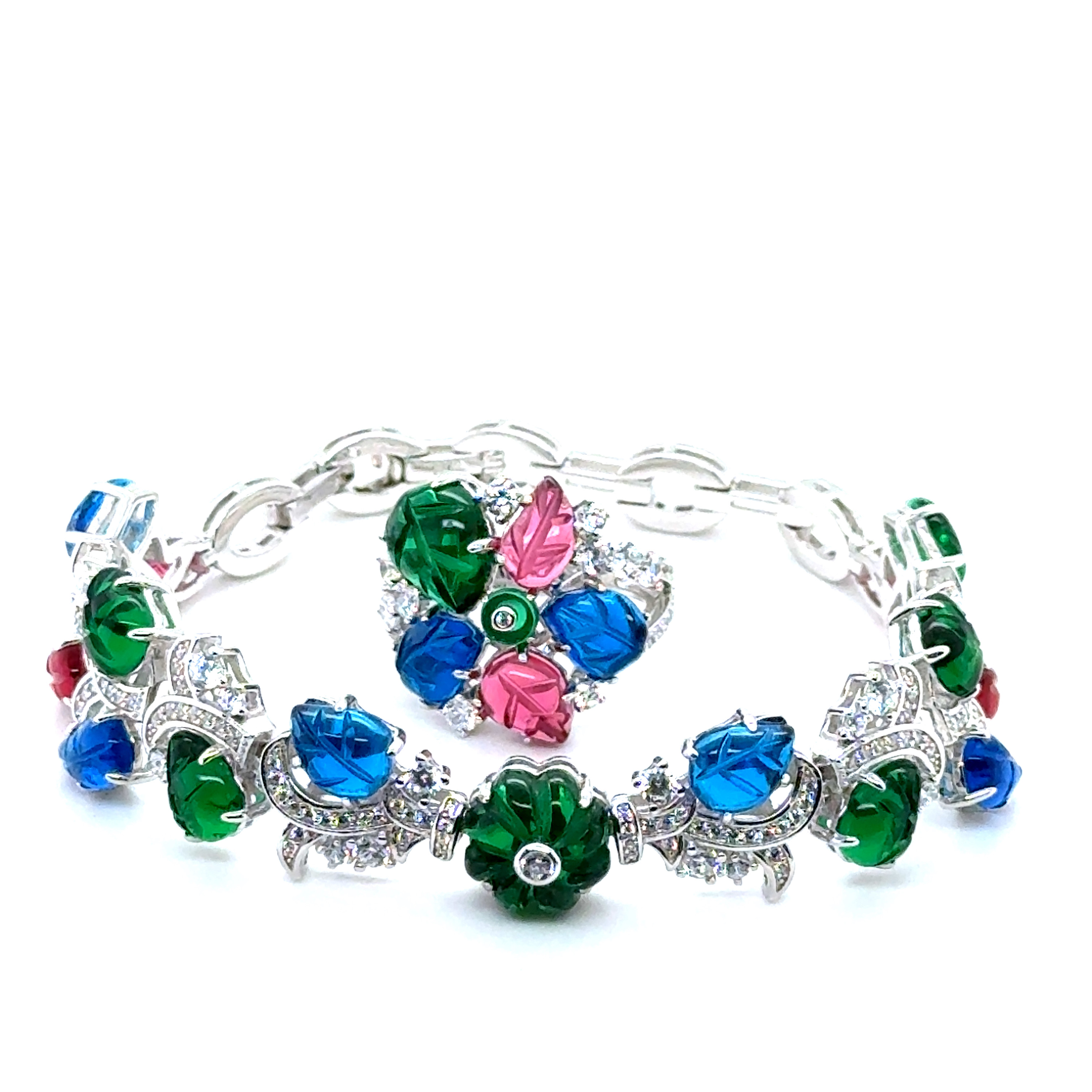 Комплект гривна и обеци от “Jacklin hugasian” в сребро с цветен кварц и циркони.