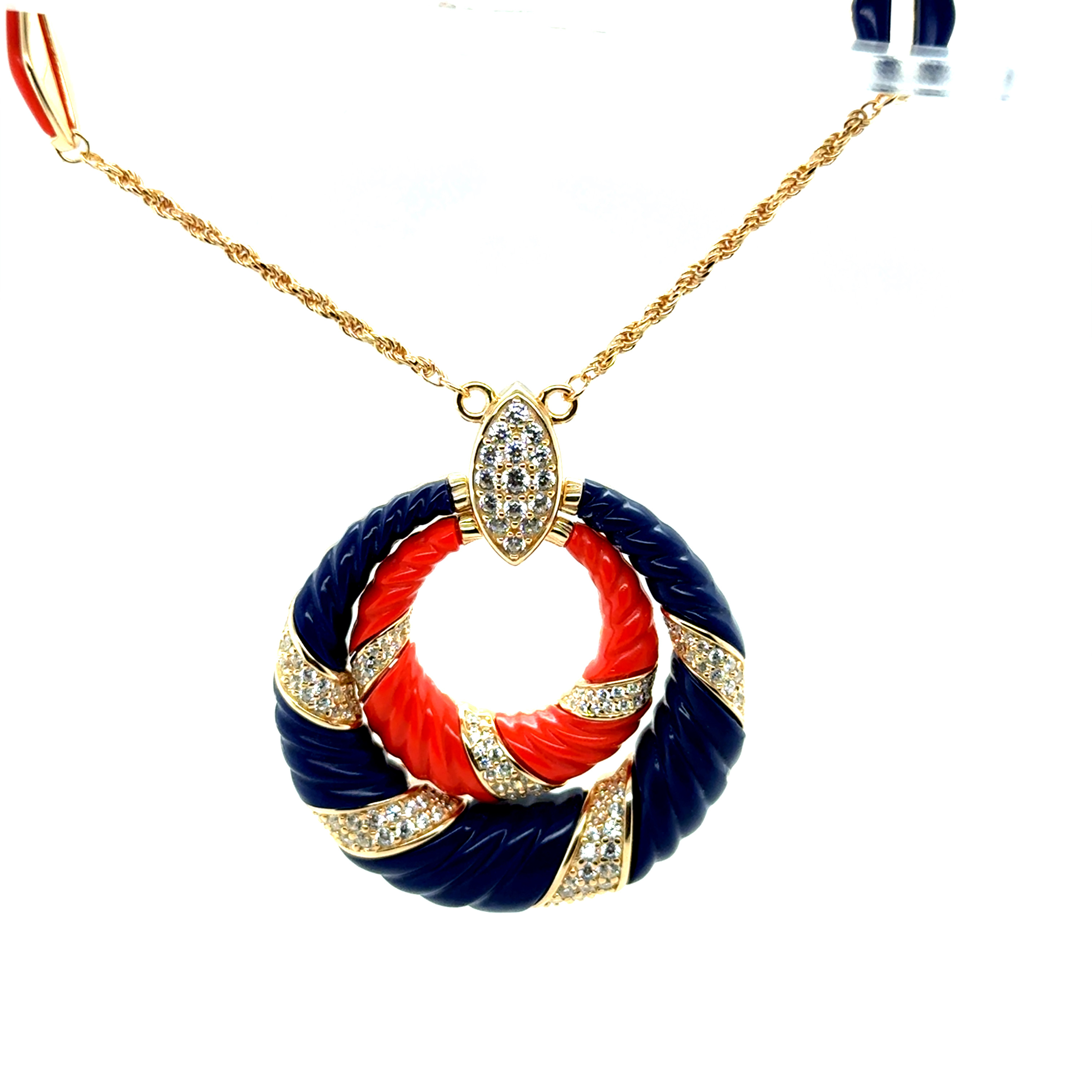 Колие от “Jacklin hugasian” в сребро с позлата, лапис лазули, карнеол и циркони.