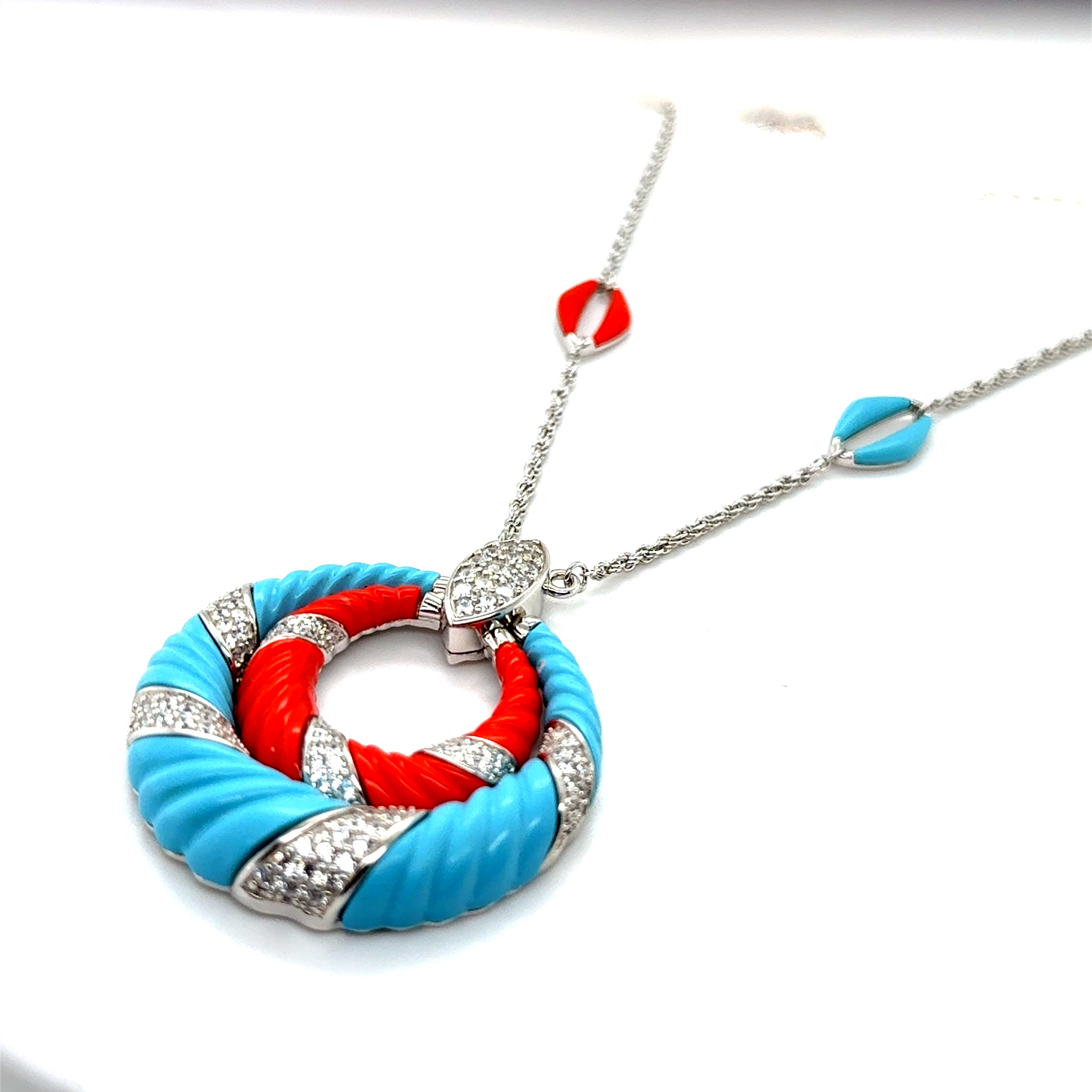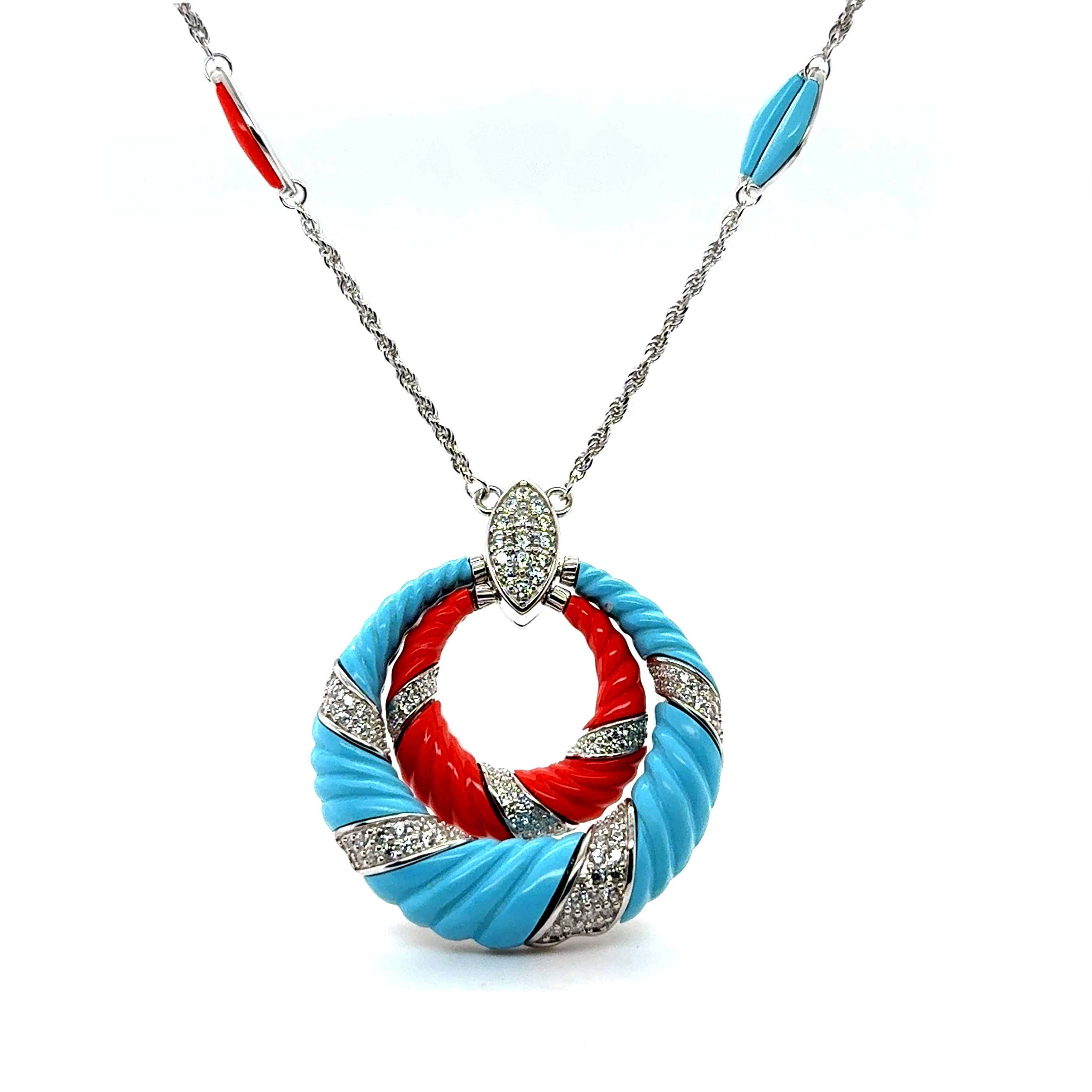 Колие от “Jacklin hugasian” в сребро с тюркоаз, карнеол и циркони.
