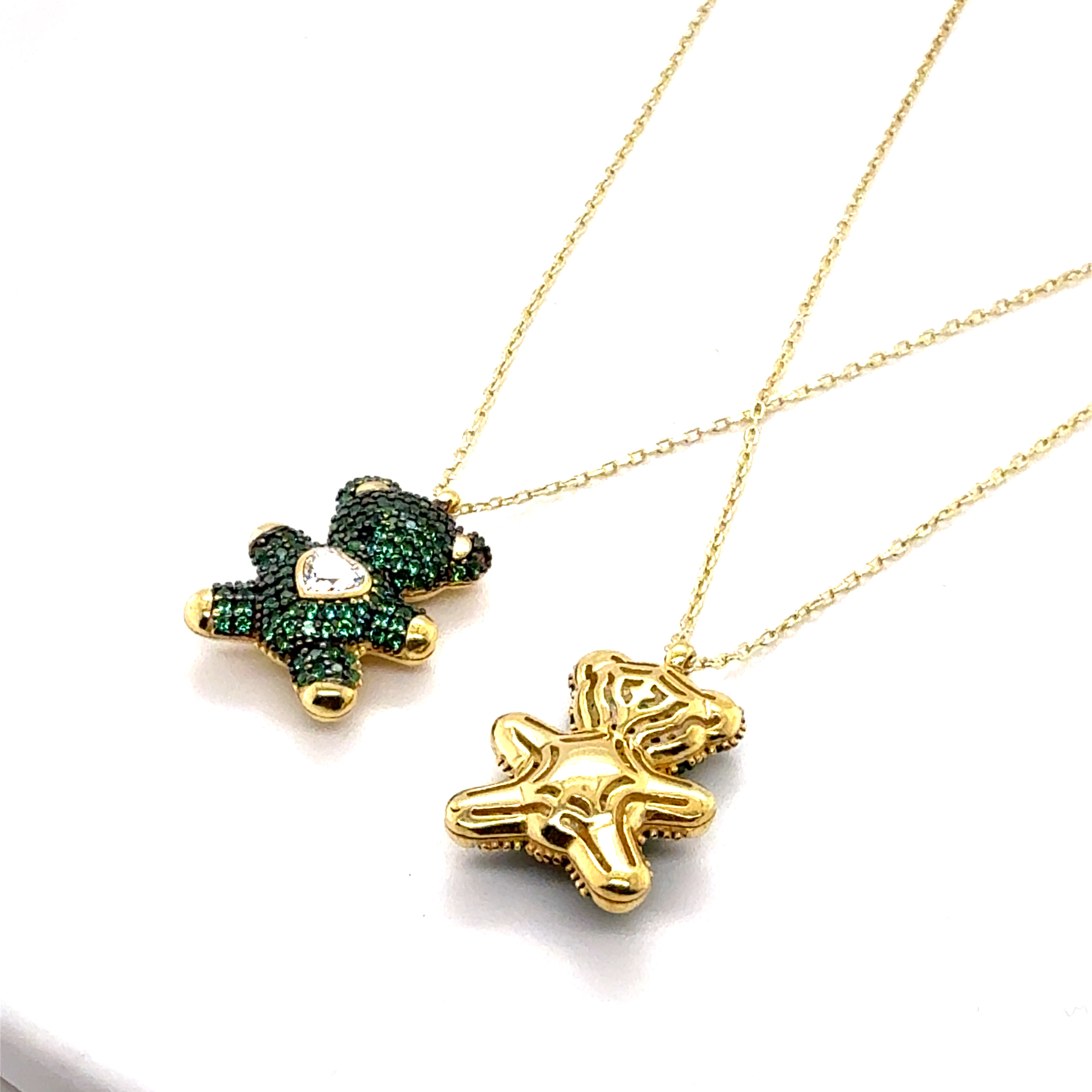 Колие от “Jacklin hugasian” в сребро с позлата,изумруди и циркон