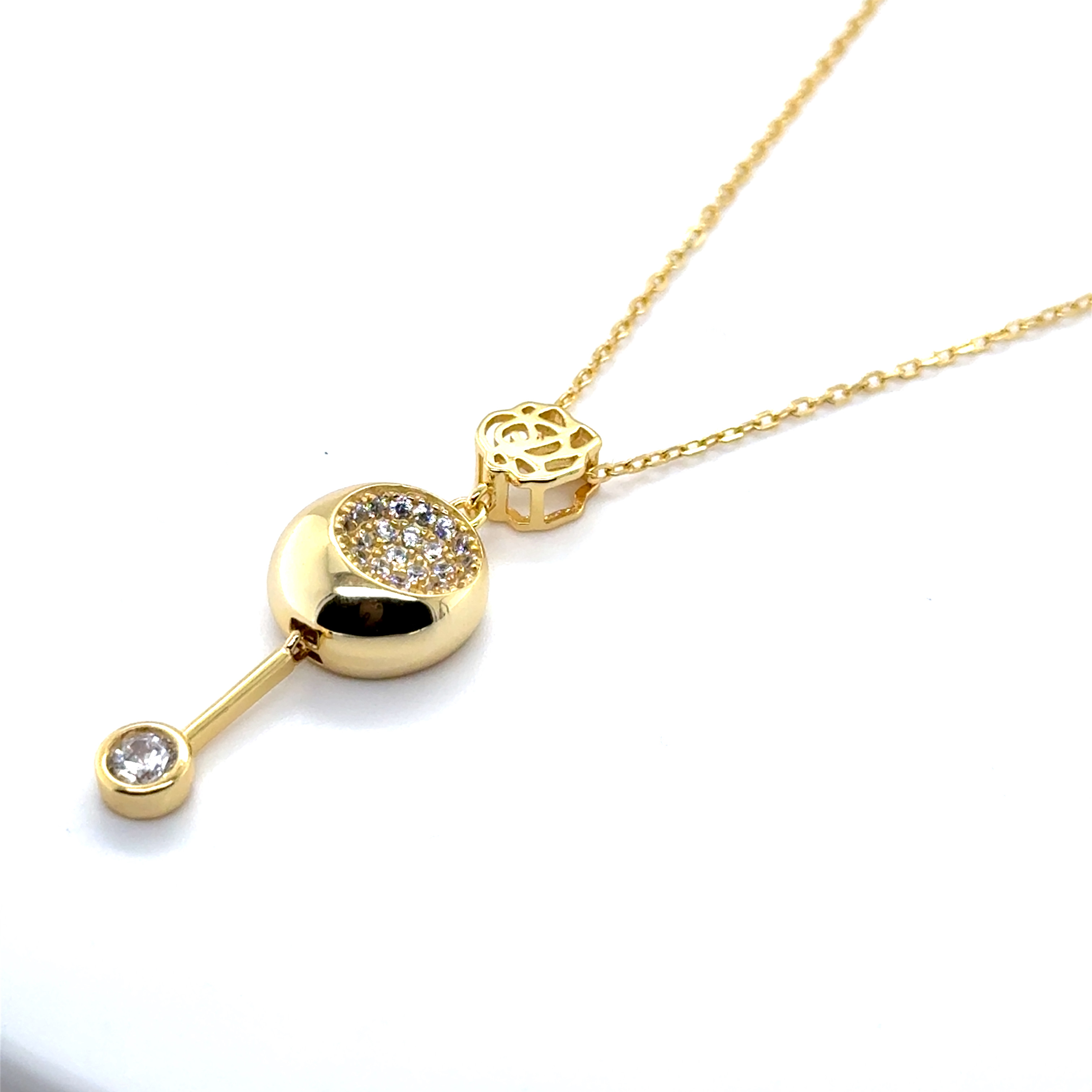 Комплект обеци и колие от "Jacklin hugasian" в сребро с позлата и циркони