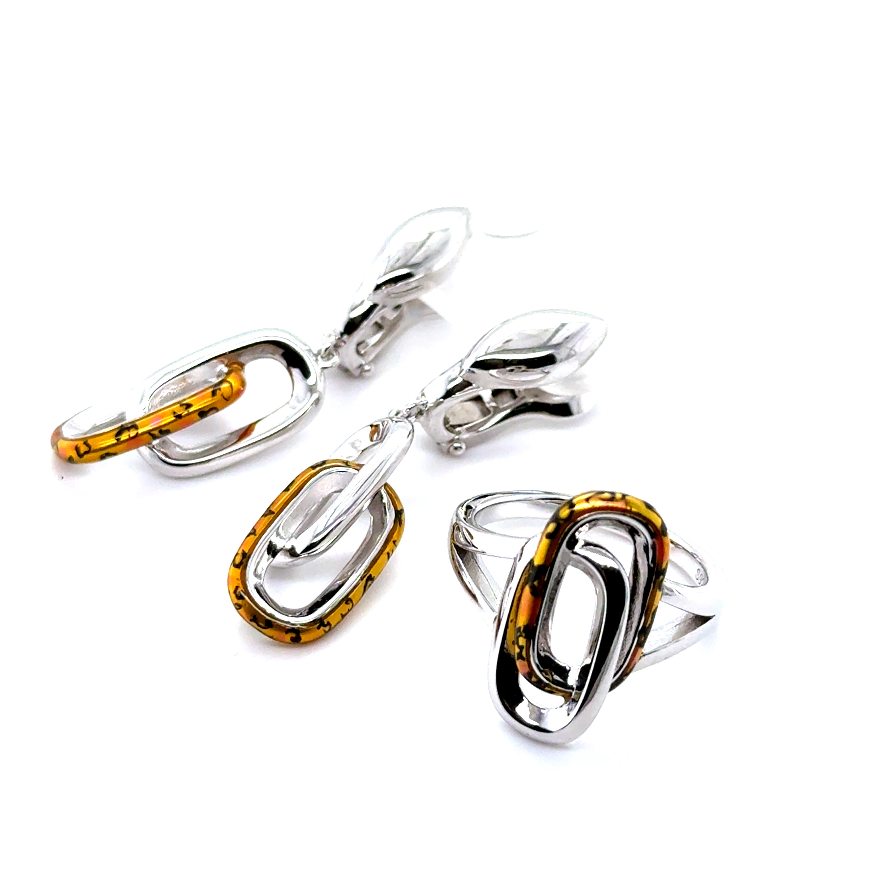 Комплект от "Jacklin hugasian" в сребро с цветен емайл.