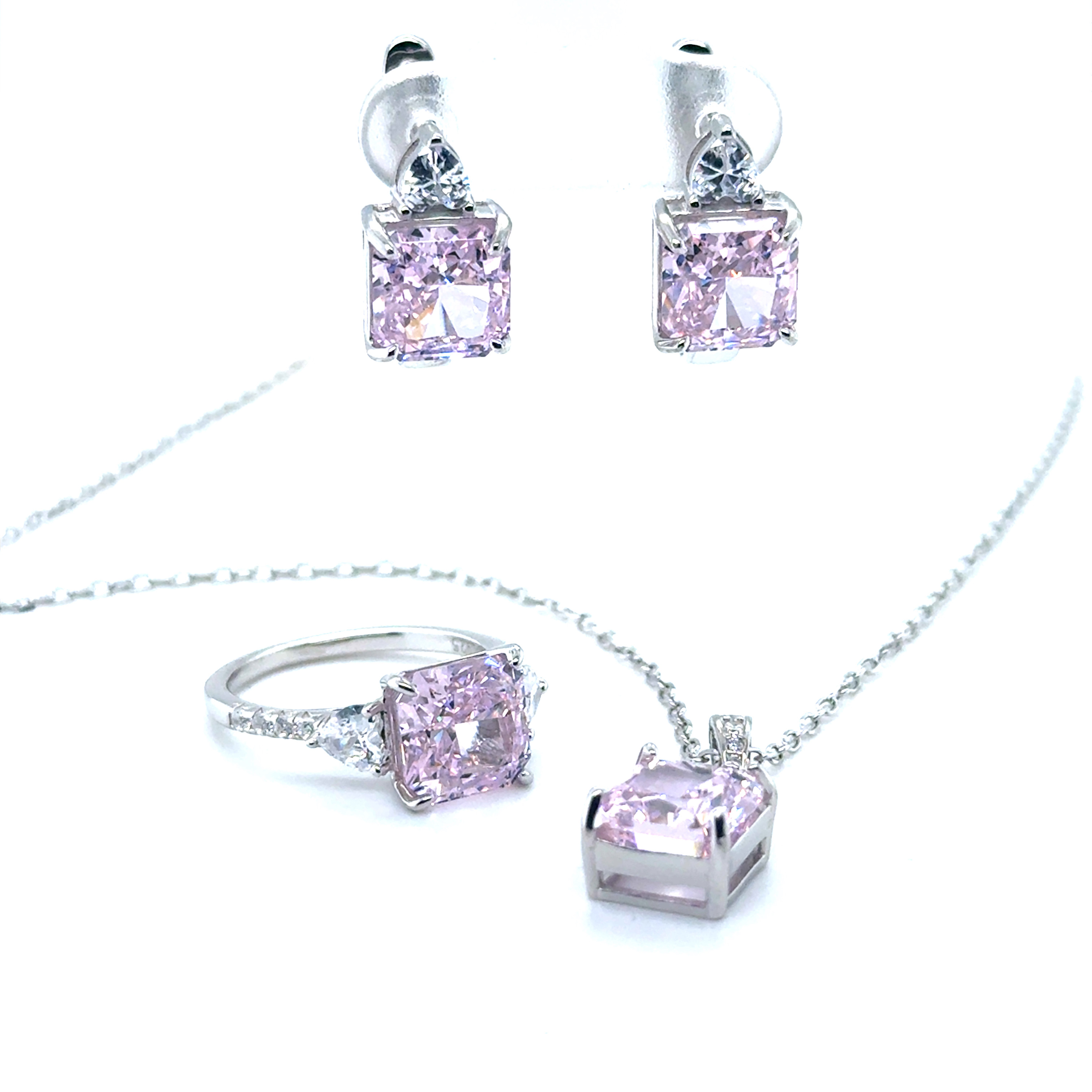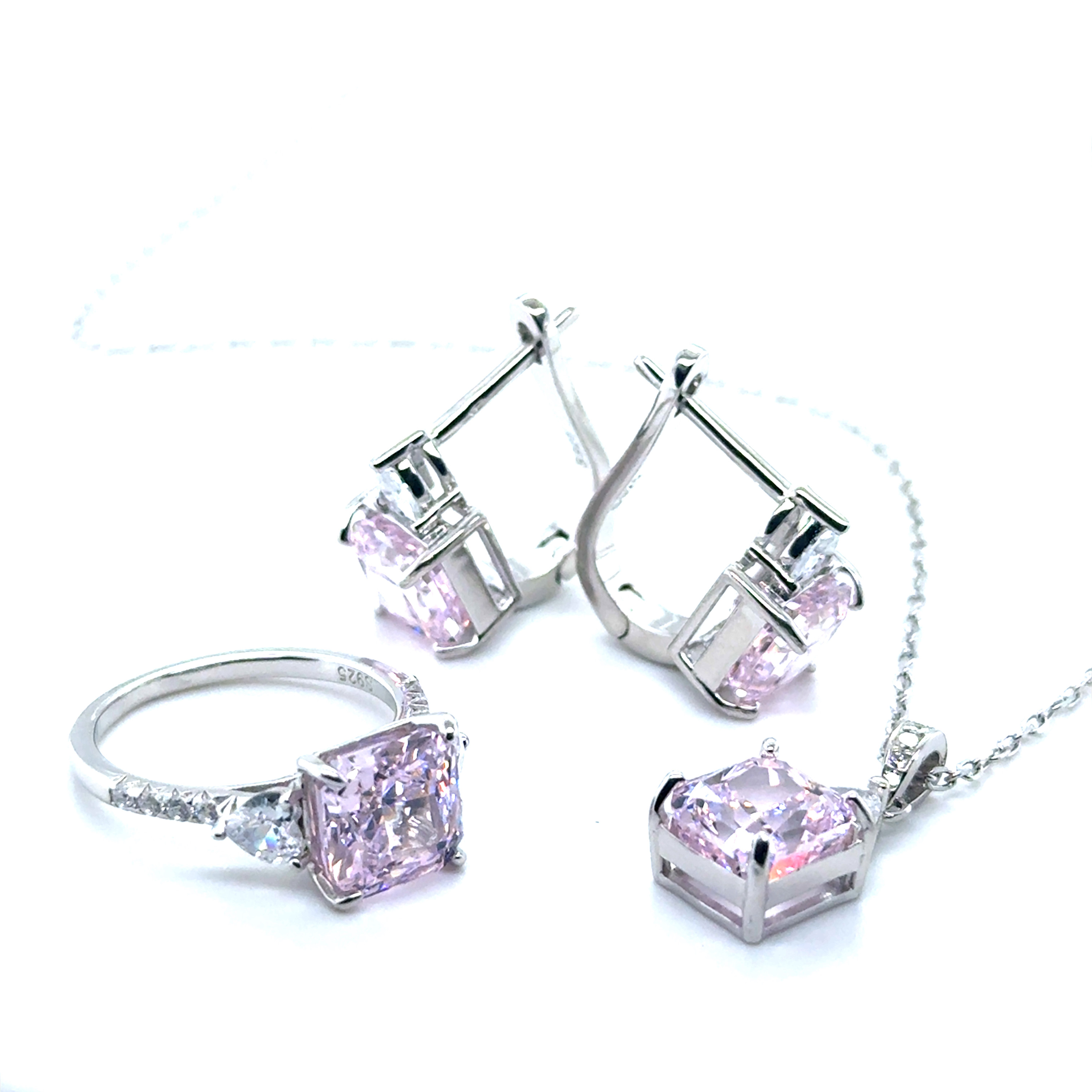 Комплект колие, обеци и пръстен от “Jacklin hugasian” в сребро с цветни циркони