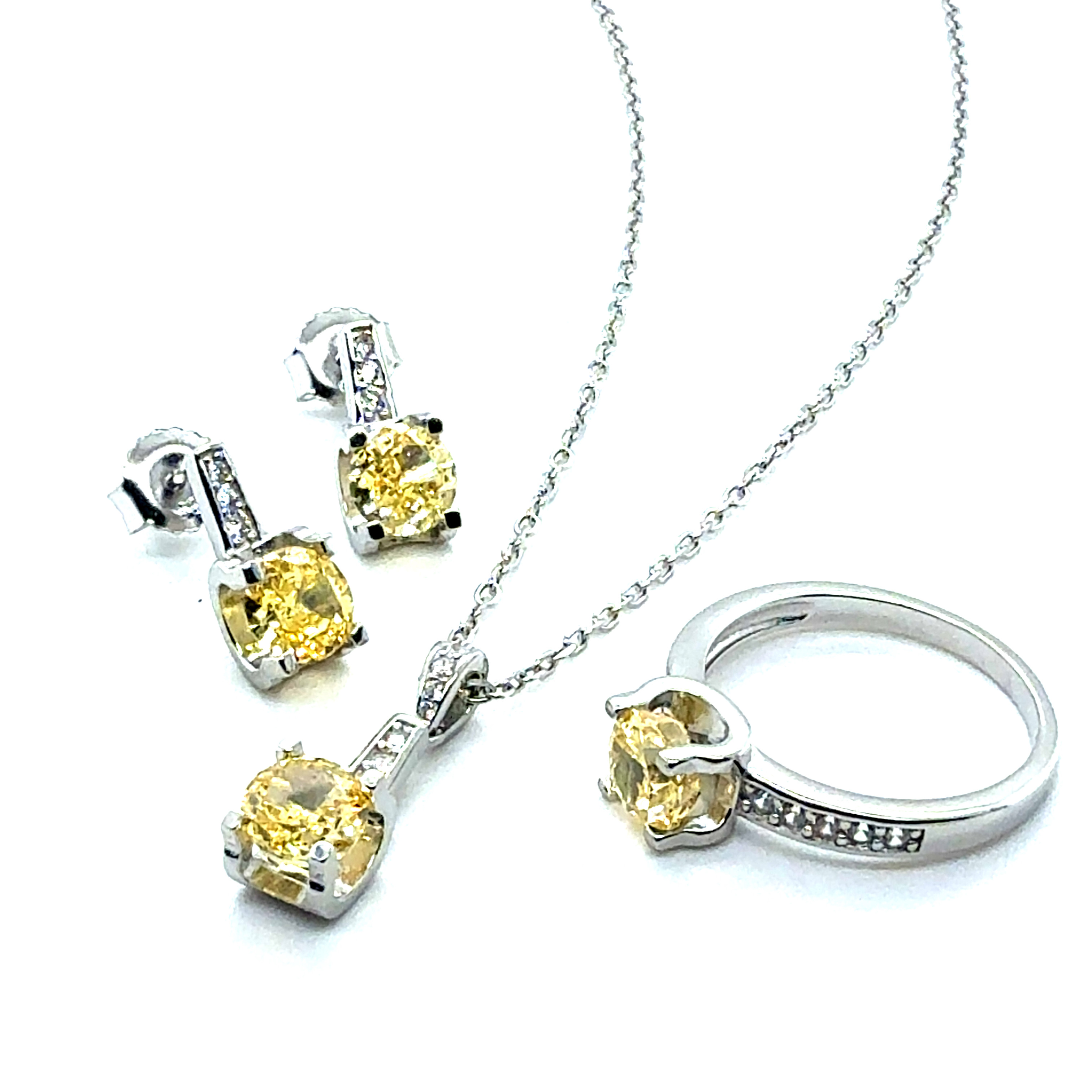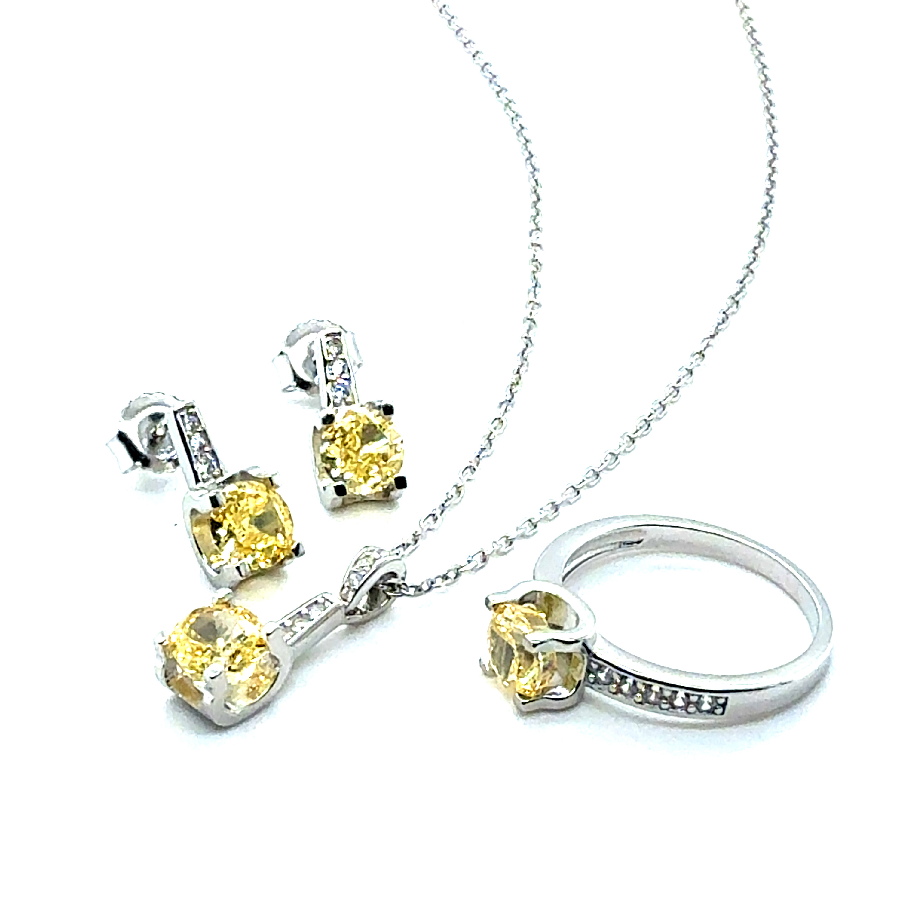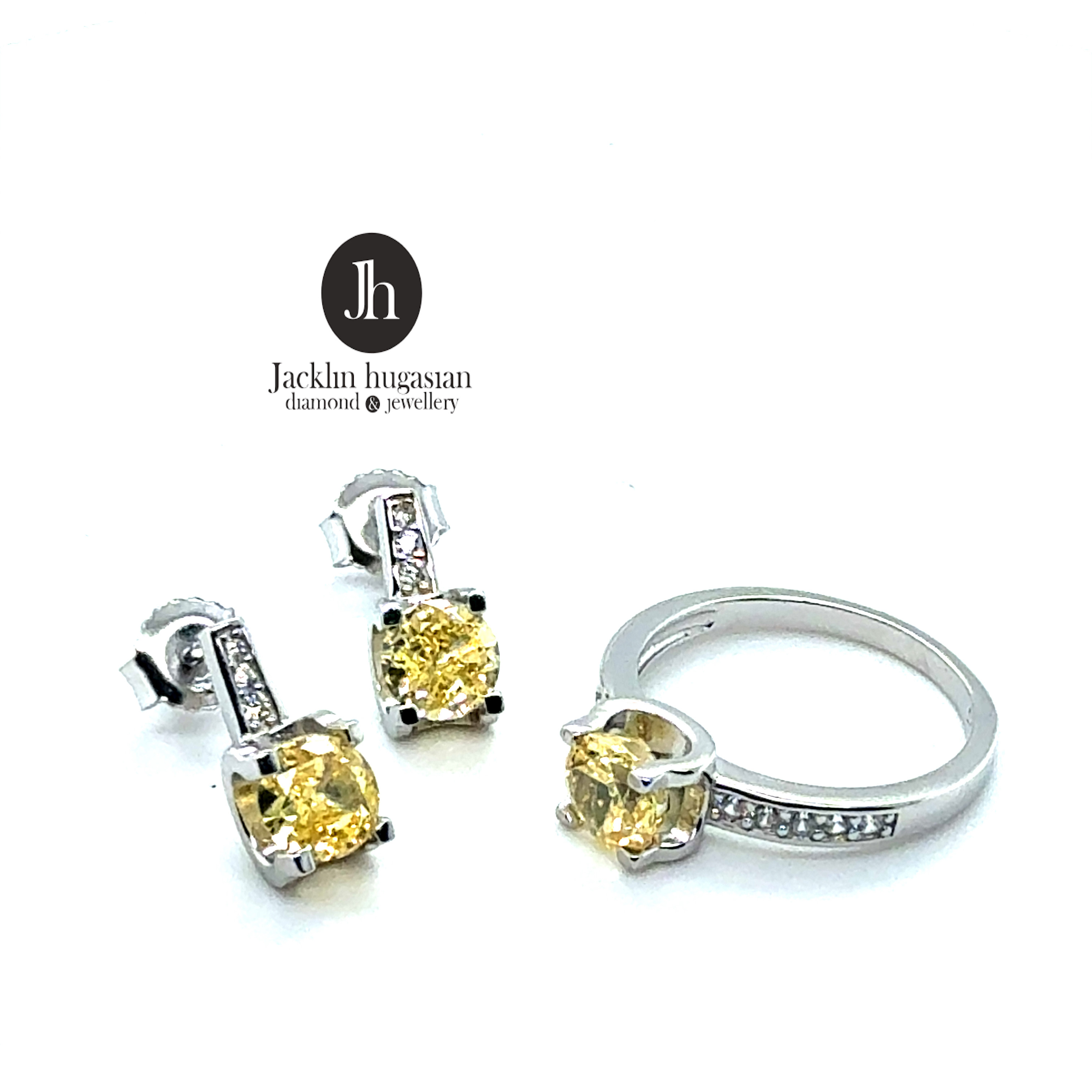 Комплект колие, обеци и пръстен от “Jacklin hugasian” в сребро с цветни циркони
