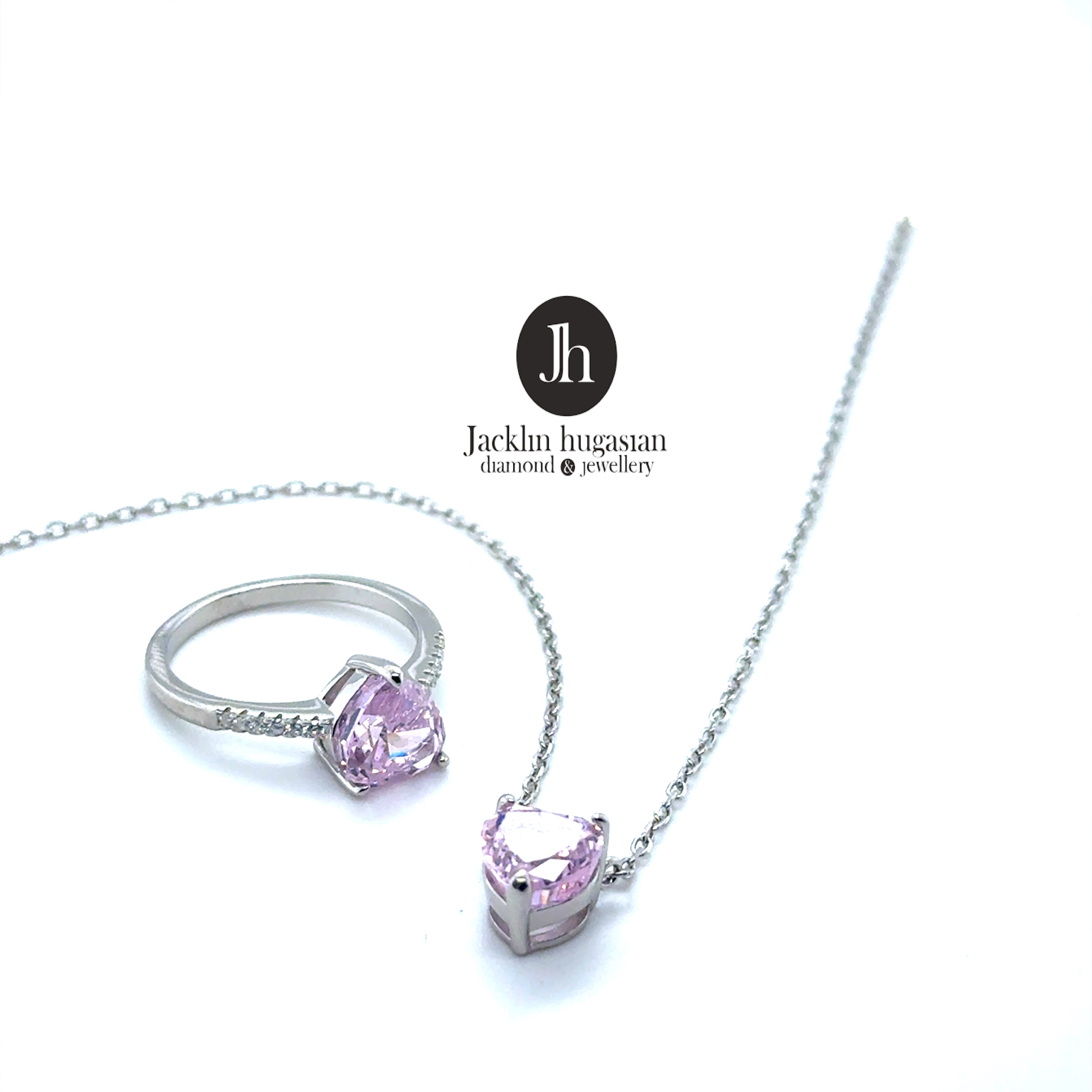 Комплект колие, обеци и пръстен от “Jacklin hugasian” в сребро с цветни циркони