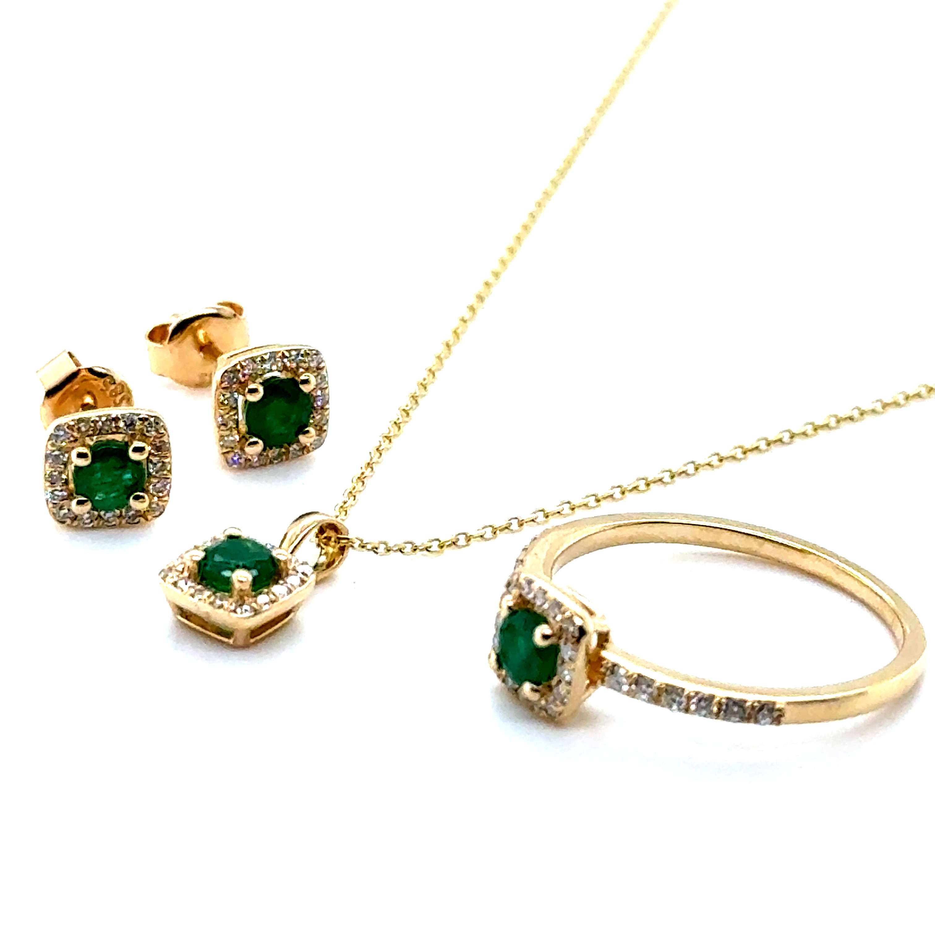 Комплект от "Jacklin hugasian" в жълто злато с естествен изумруд и диаманти.