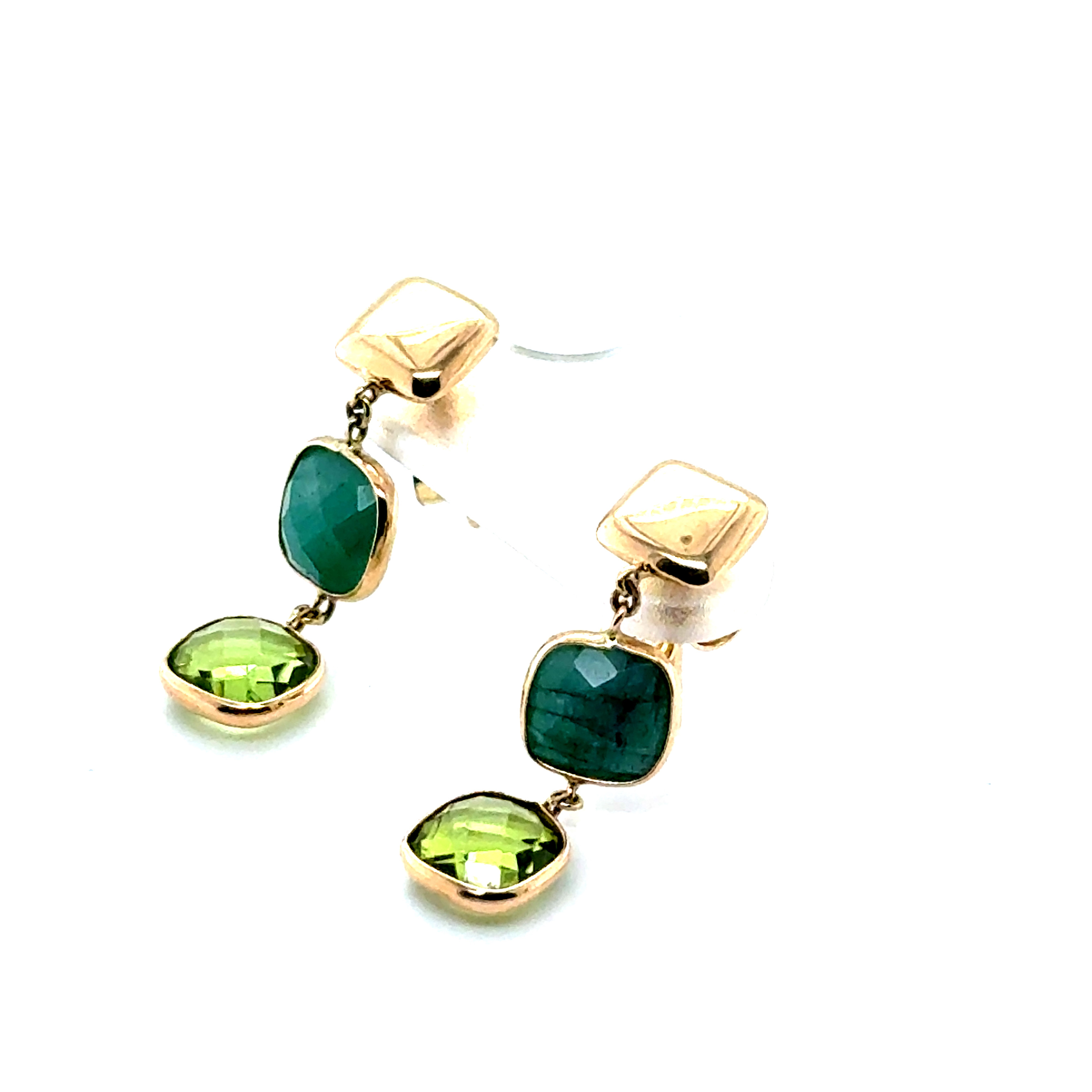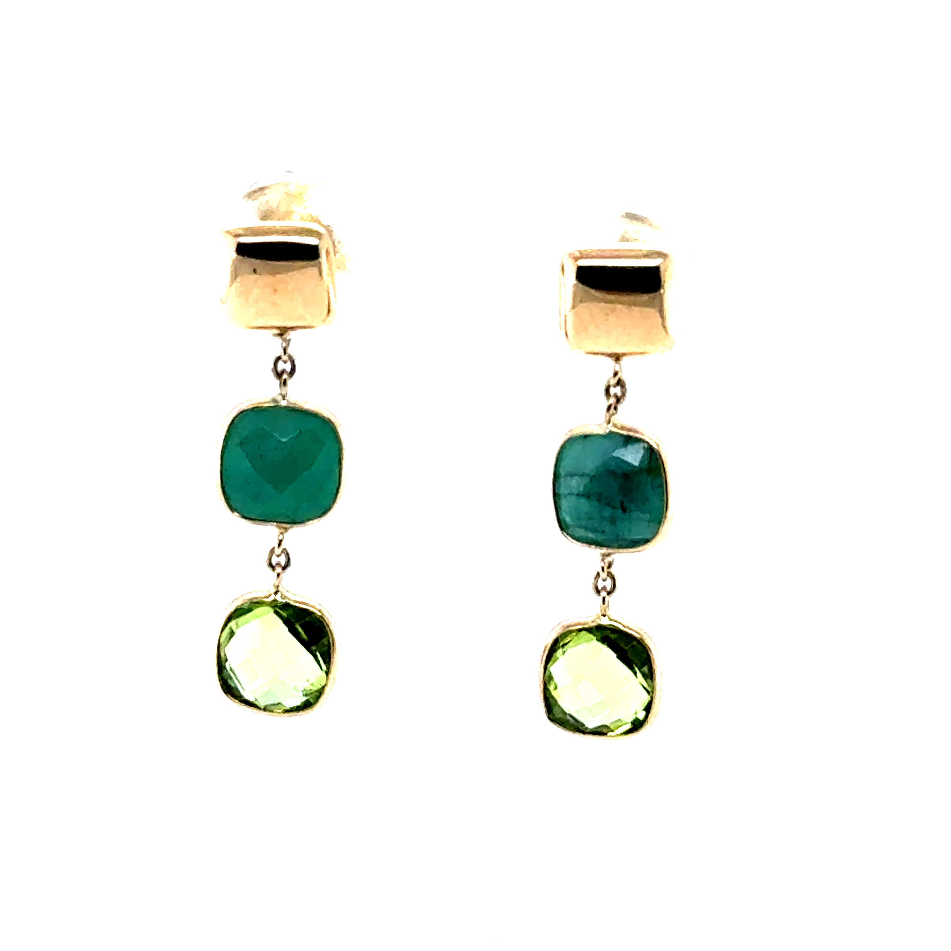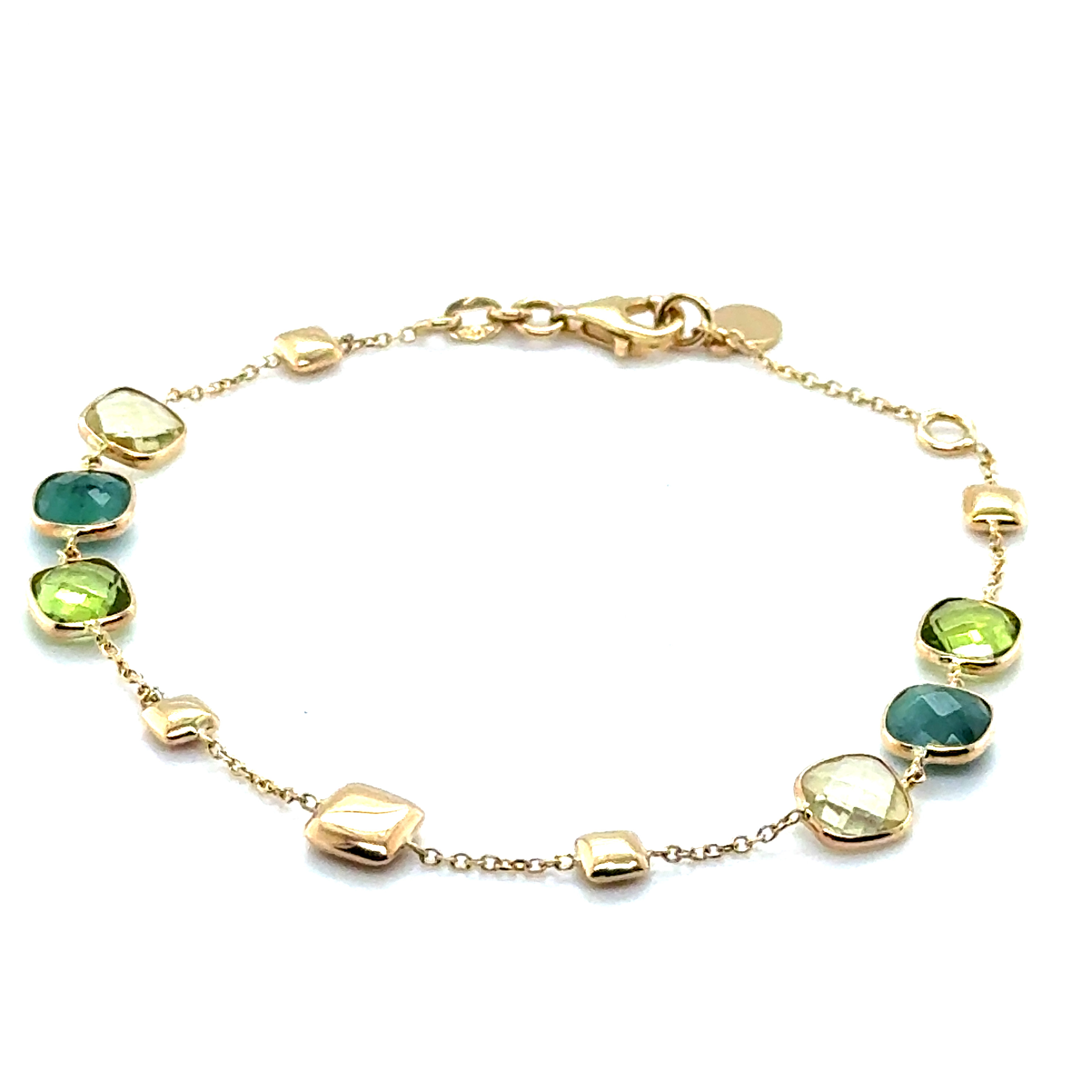 Комплект обеци и гривна от “Jacklin hugasian” в жълто злато с перидот, цитрин и зелен хематит