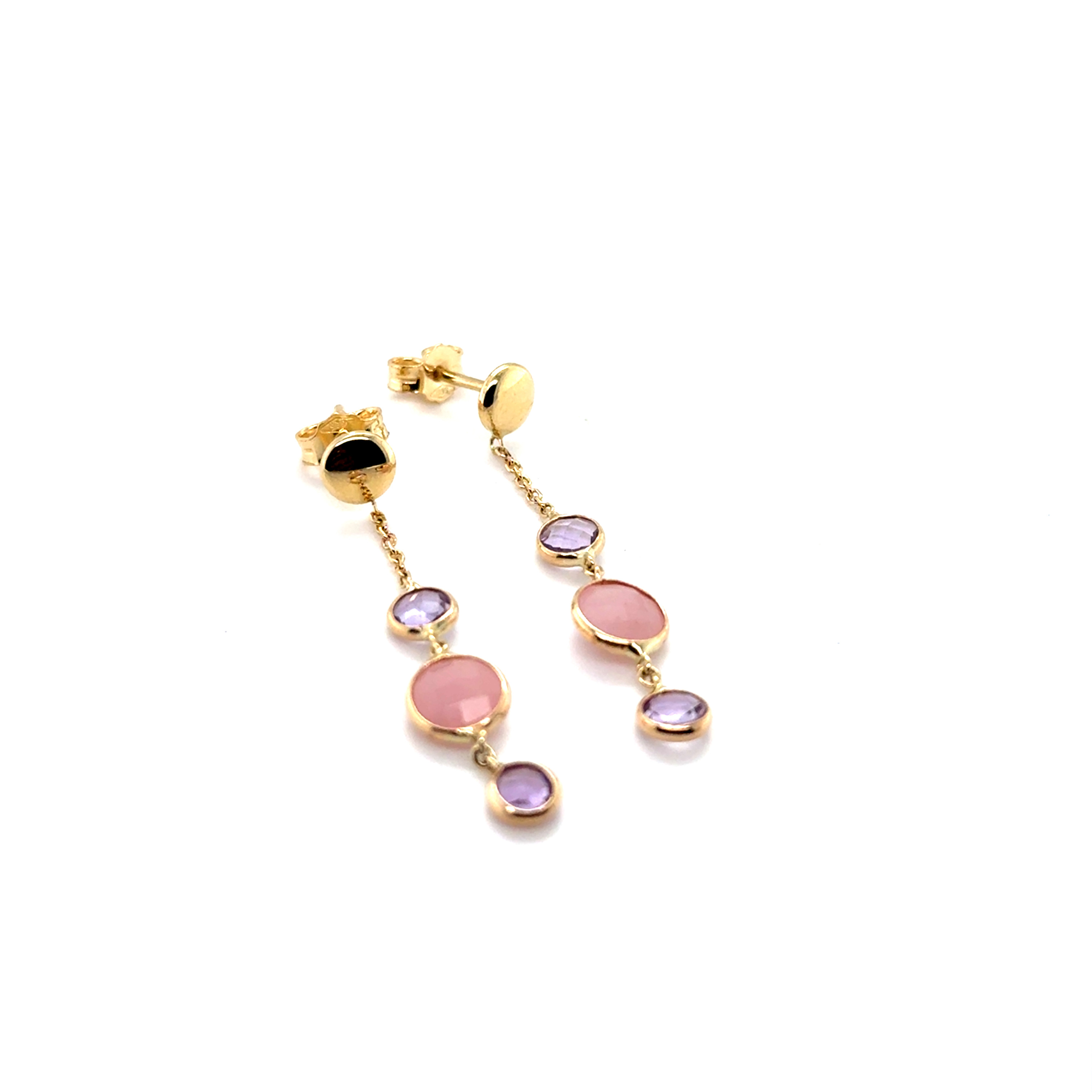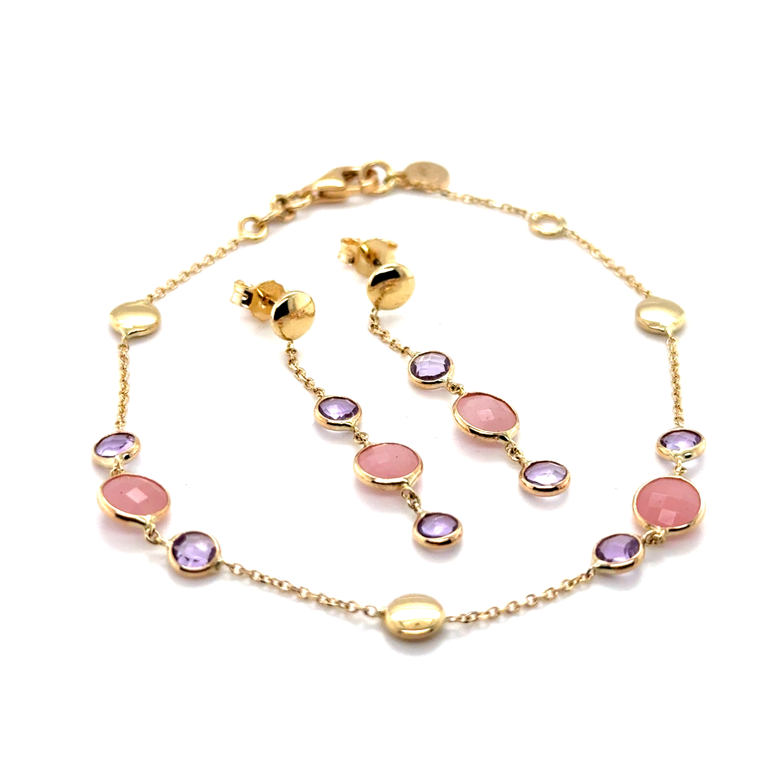 Комплект обеци, колие и гривна от “Jacklin hugasian” в жълто злато с аметист и розов кварц