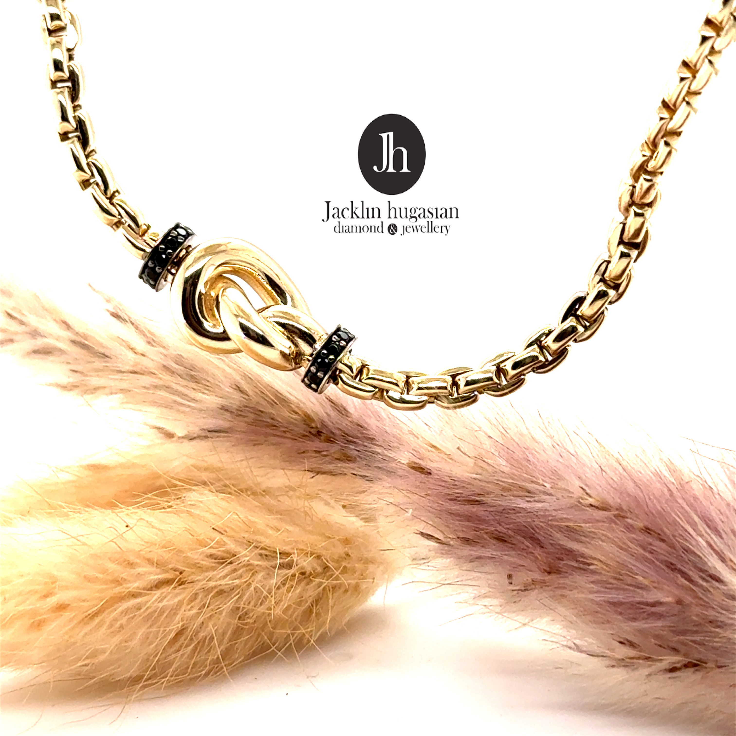 Колие от “Jacklin hugasian” в жълто злато с оксидация.