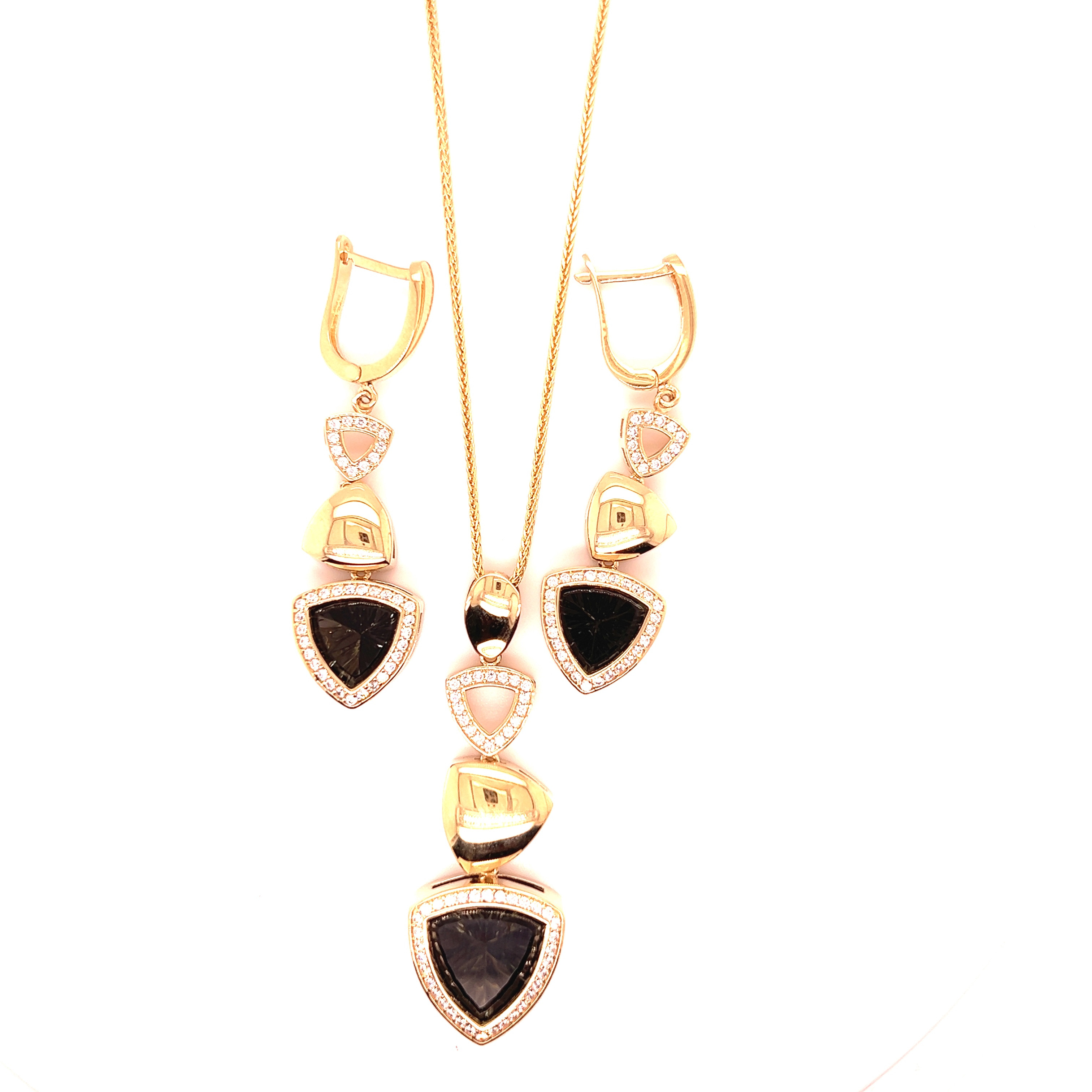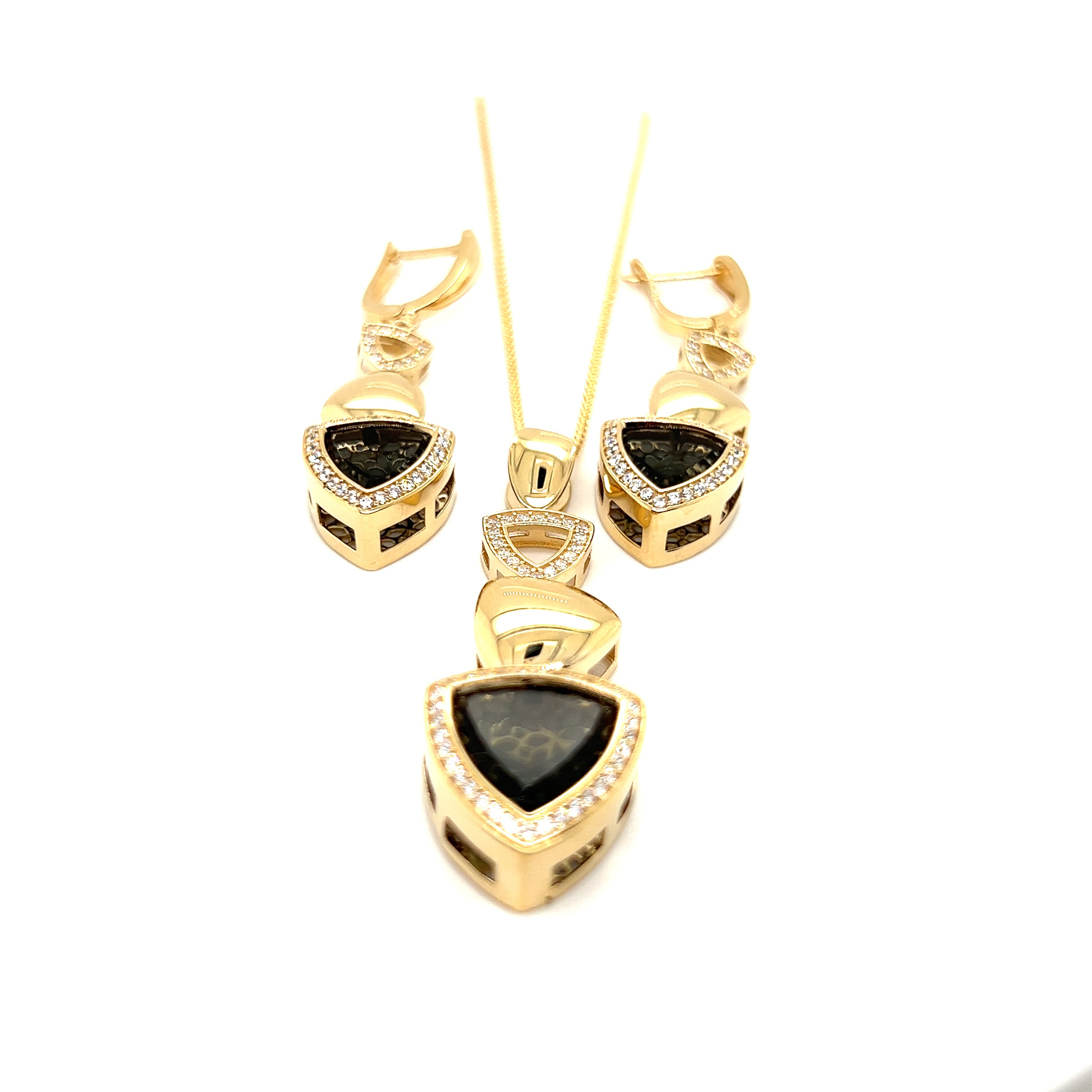 Комплект обеци и медальон от “ Jacklin hugasian “ в жълто злато с топаз и цирконии.
